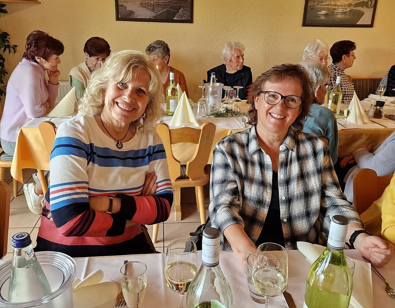 Teilnehmerin Hilde Dietrich, die Christa Schneider bei der Organisation der Feier unterstützt hatte, hob in ihrer Begrüßungsansprache neben der regelmäßigen Teilnahme der Turnerinnen an den wöchentlichen Gymnastikstunden insbesondere das große Gemeinschaftsgefühl in der Gruppe hervor. In den vergangenen 60 Jahren haben sie viele gemeinsame Erlebnisse und Aktivitäten miteinander geteilt, darunter Ausflüge mit dem Bus zu Städtetouren und Weihnachtsmärkten, Stammtischrunden nach der Turnstunde, Fahrradtouren in den Sommerferien, Gymnastiktage im Kreis Groß-Gerau und Teilnahmen an Umzügen. Bei der 1150 Jahrfeier waren die Gymnastikdamen als große Fußgruppe mit dem Motto „groß und schee muss vorne hee“ durch Golle marschiert.  Der TSV konnte bei seinen Veranstaltungen immer auf die Damen als Helfergruppe zählen. Einige Frauen, die nach Goddelau zugezogen waren, haben hier schnell Anschluss gefunden und neue Freundschaften geschlossen.