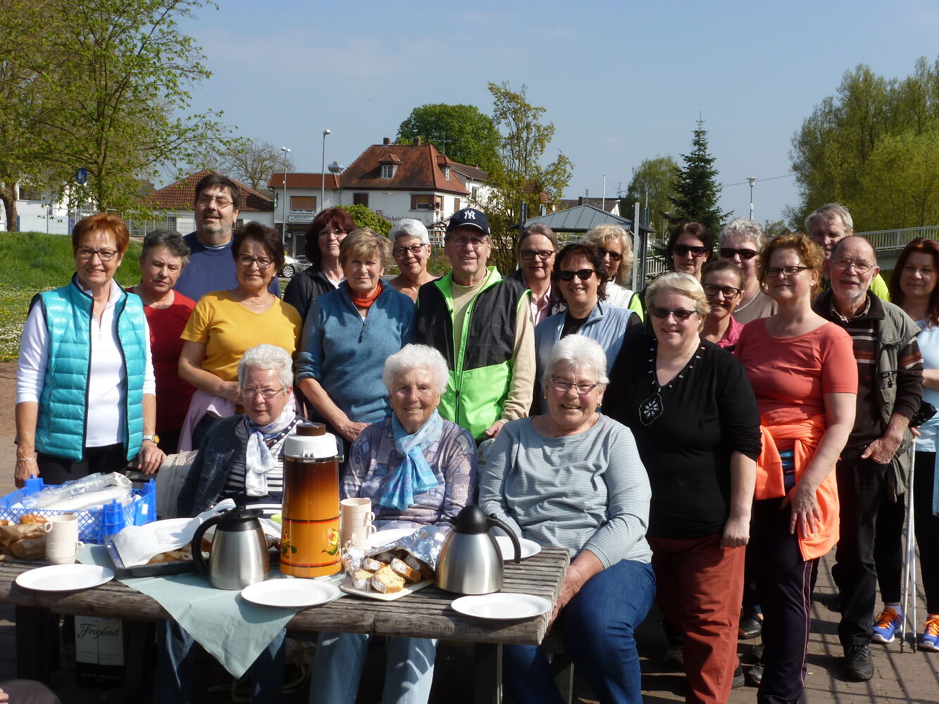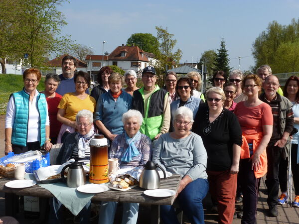 Mit Sekt, Kaffee und Kuchen wurde das Jubiläum mit 25 aktiven und teilweise aus Alters- oder Gesundheitsgründen inzwischen inaktiven Nordic-Walker/innen bei bestem Wetter gebührend gefeiert.