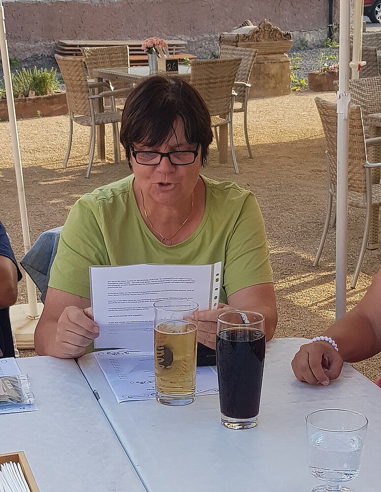 Teilnehmerin Petra Knöß berichtete in ihrem kurzweiligen Vortrag von vielen gemeinsamen Erlebnissen und Aktivitäten der Dienstagsgruppe: