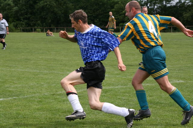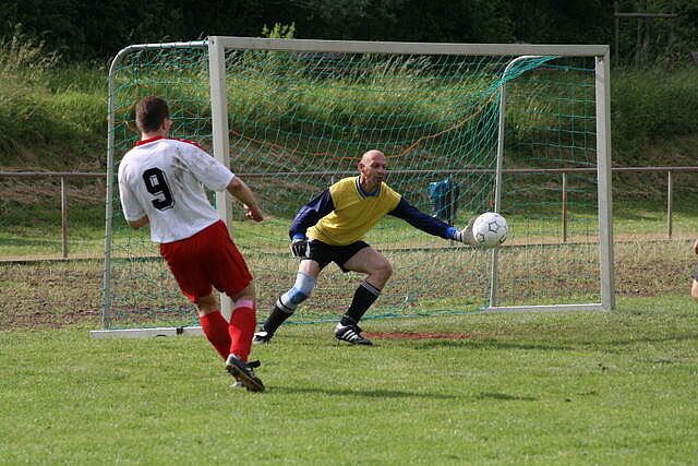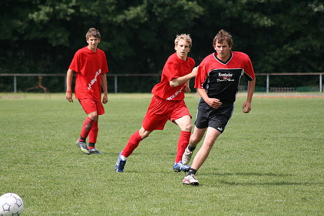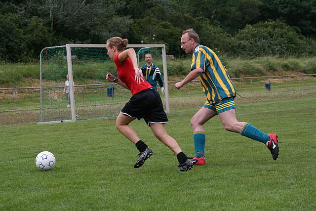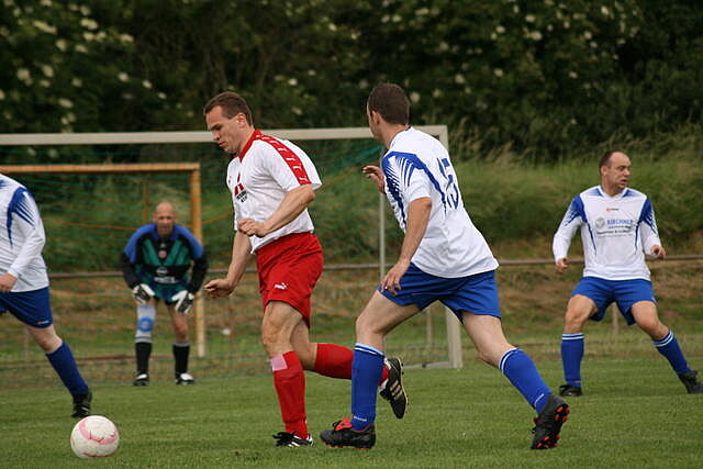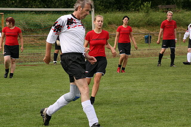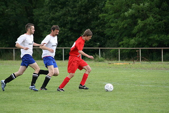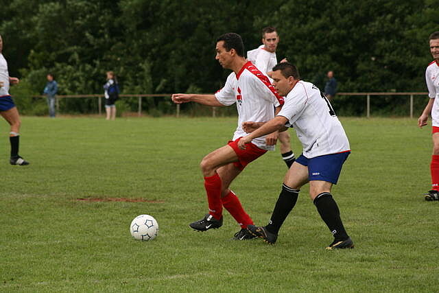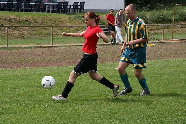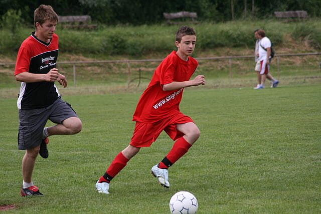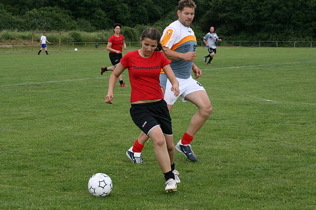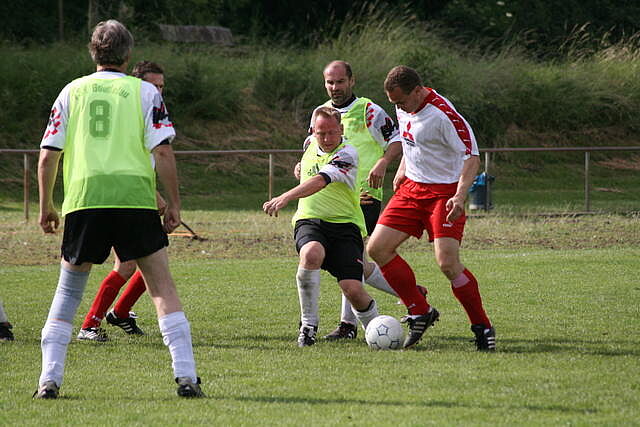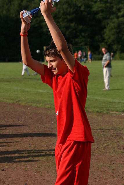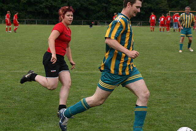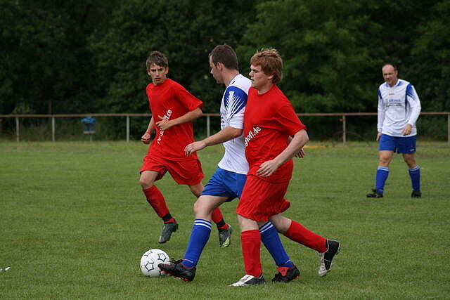 Erfreulich war, dass es durchweg faire Spiele waren und auch zwischendurch einsetzender Regen die Laune nicht trübte. So war die Hüpfburg vor und nach der Regenpause genauso beliebt, wie das Spielmobil des Kinderschutzbundes. Auch von einer kurzfristig organisierten Tombola wurde reichlich Gebrauch gemacht. Das Torwandschießen gewann Ruben Kiroff im Stechen gegen Martin Schulz. Bei den Kindern sorgte Robin Borger mit 4 Treffern für einen neuen Rekord und erhielt ebenfalls einen Pokal. Als fairste Mannschaft wurde das Manndeckerteam ausgezeichnet. Nach der Siegerehrung sorgte die Gruppe „Soundwave“ für Stimmung und es wurde bis nach Mitternacht das Tanzbein geschwungen.