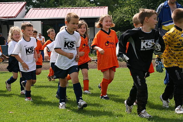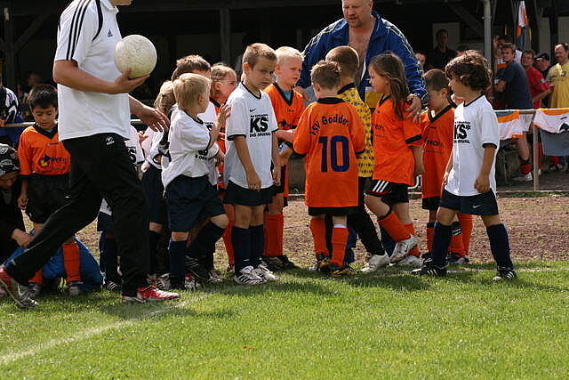 Nach den Gruppenspielen wurde unsere G-Jugend in einem Einlagespiel von ihren Eltern, Großeltern, Betreuern und den zahlreichen Zuschauern angefeuert. Sie waren mit Eifer bei der Sache und zeigten, dass sie es auch schon können. Es machte Spaß, zuzuschauen.