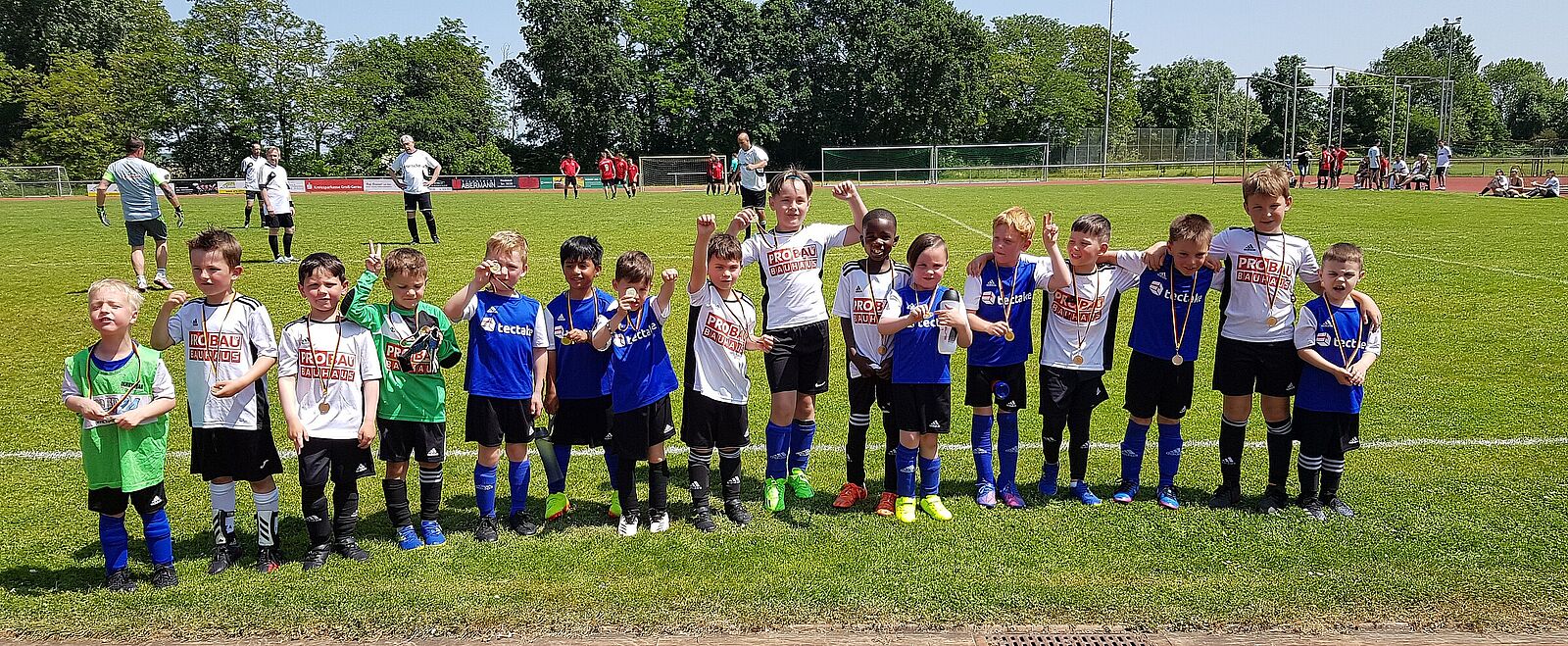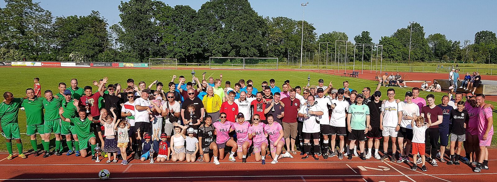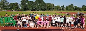 Beim Freizeitkicker-Turnier am Pfingstsonntag waren insgesamt zehn Mannschaften bei herrlichem Sonnenschein am Start. Am Ende siegte nach spannenden Spielen das Team „Talentschmiede“, das im Finale erst im Elfmeterschießen die BSG Vitos mit 4:3 bezwingen konnte. Den dritten Platz belegte das Team „Zu fett für Ballett“. Der Fairnesspokal ging an die Leehmer Kicker Girls. Einen Ehrenpokal erhielt Schiedsrichter Heinz Osteroth von der Turnierleitung. Heinz Osteroth ist seit über 30 Jahren beim Pfingstturnier im Einsatz.