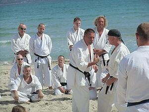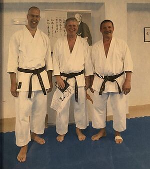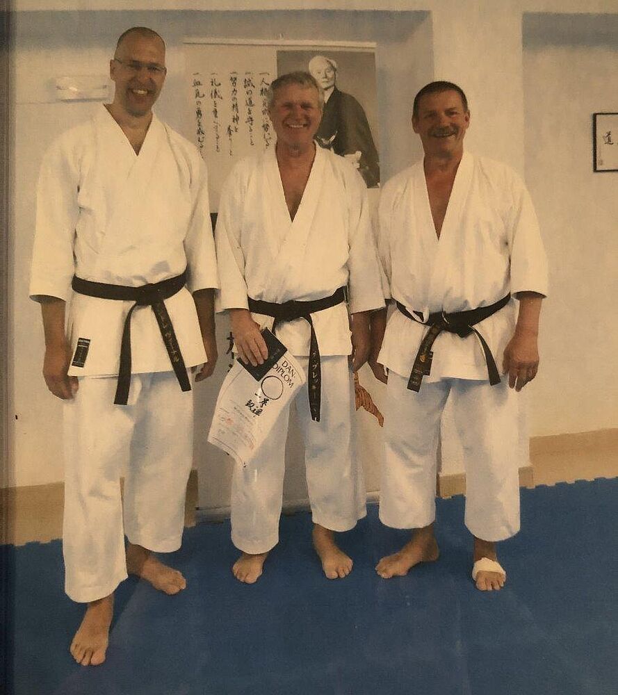 Bild: von links Prüfer Andre Wehnert, Wolfgang Brzezicki Prüfung auf Mallorca 06.05.2016 zum 5. Dan und Prüfer Lothar Ratschke.