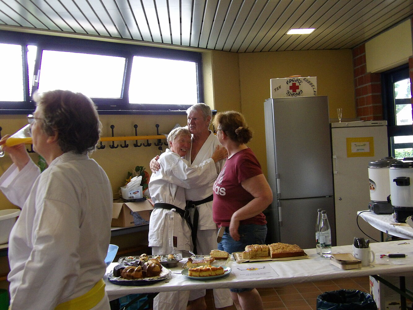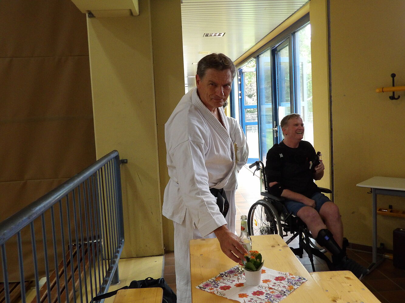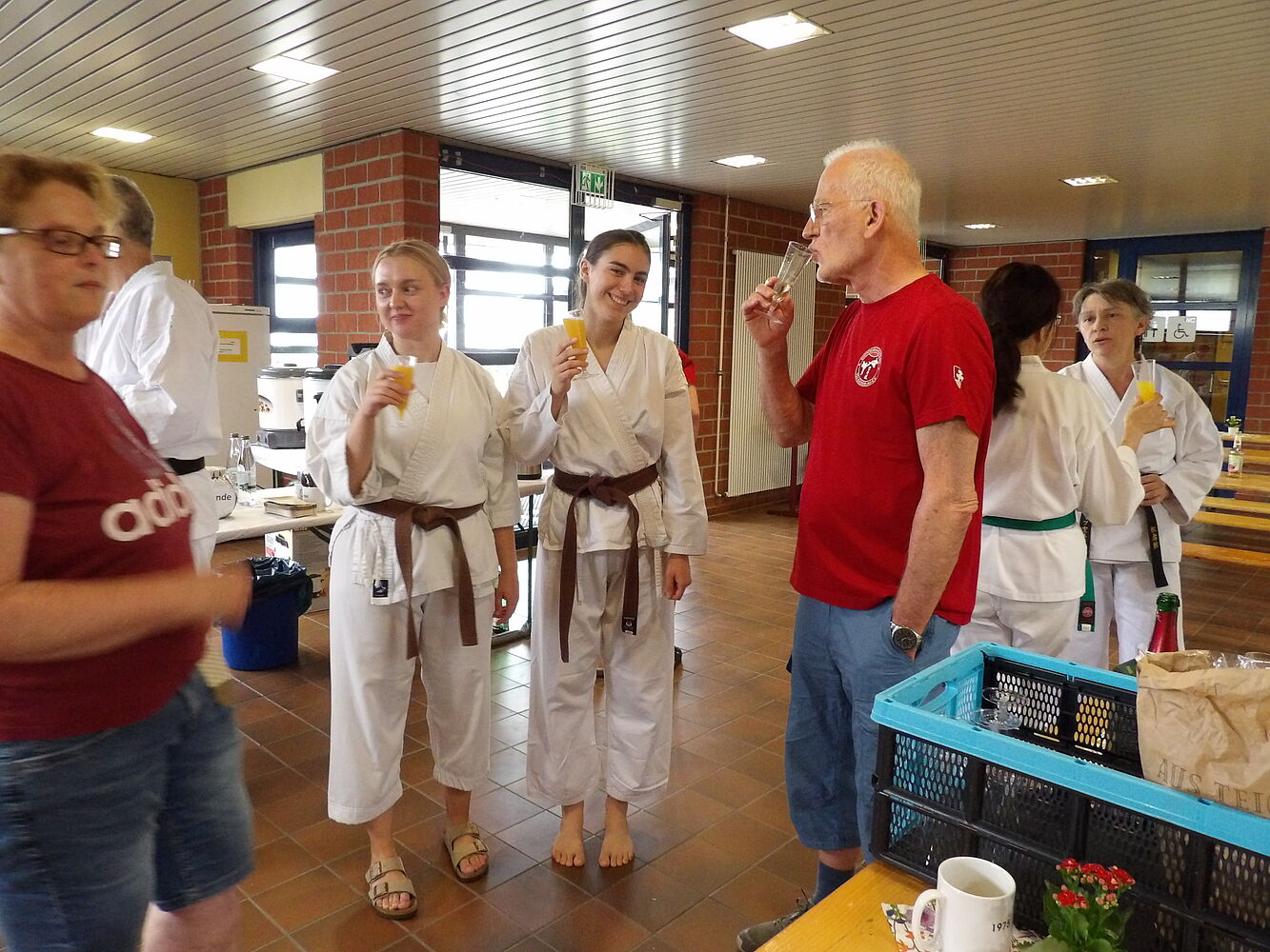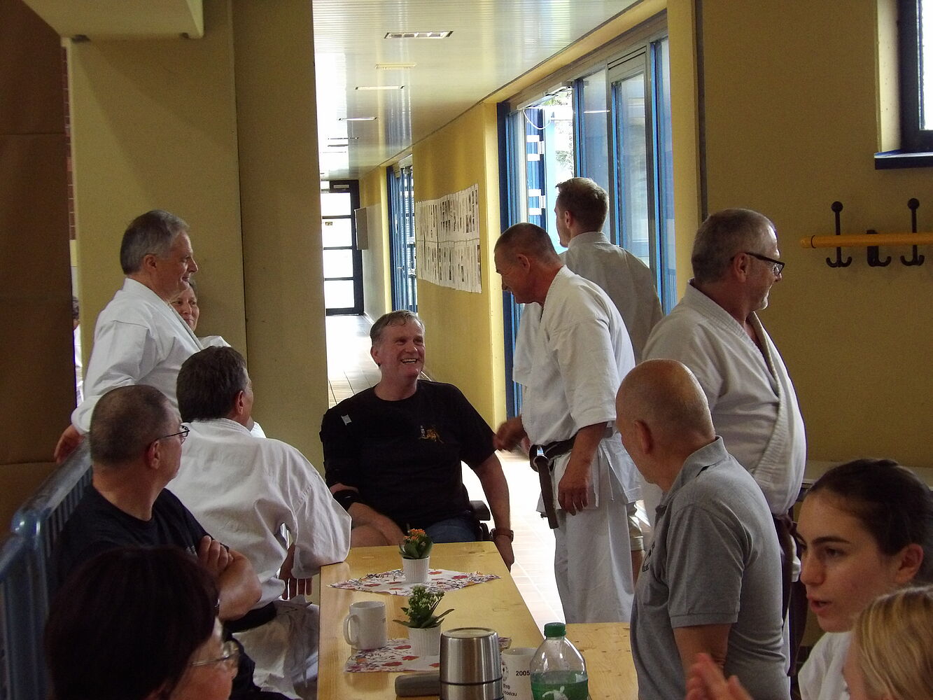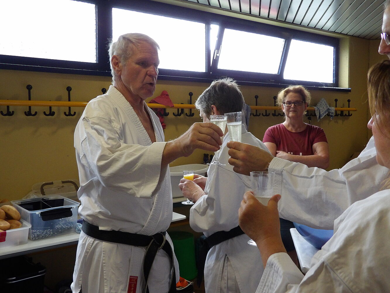 Der Dojoleiter dankte den Teilnehmern für ihr Kommen und den Dojo-Mitgliedern und Helfern für ihren Einsatz, durch den eine solche Veranstaltung erst möglich wird. Er lud abschließend auf ein Glas Sekt ein, was jedoch viele erst nach dem optionalen Hanbo- Training in Anspruch nahmen.