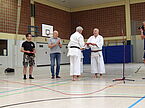 Nach der zweiten Einheit rief Vorstandsmitglied Udo Nowag nochmals alle Anwesenden zusammen und sprach dem Jubilar Wolfgang Brzezicki im Namen aller Goddelauer Karateka Dank und Anerkennung aus und überreichte ebenfalls ein Präsent. Es gab lang anhaltenden Applaus.