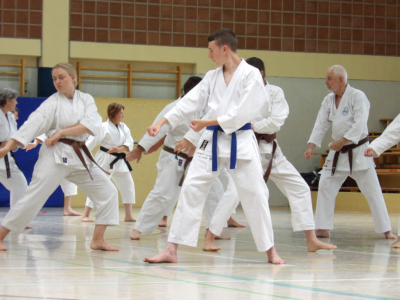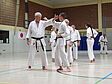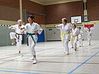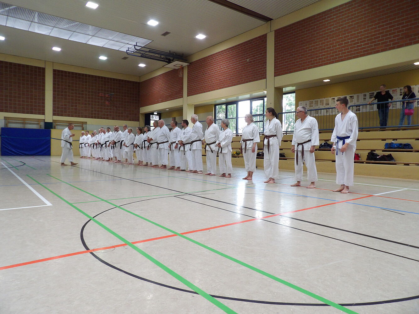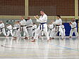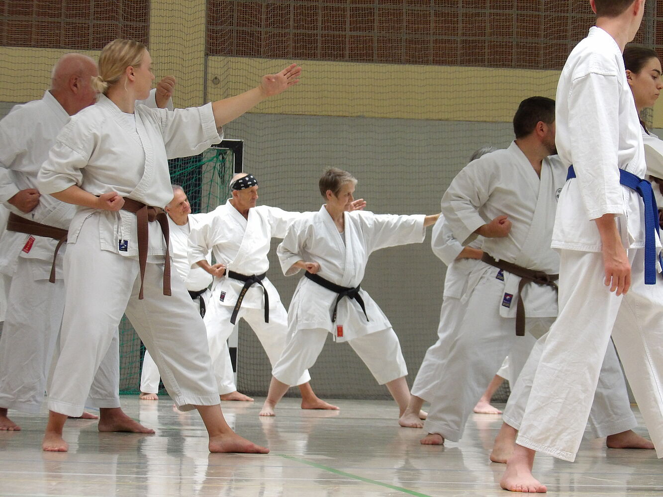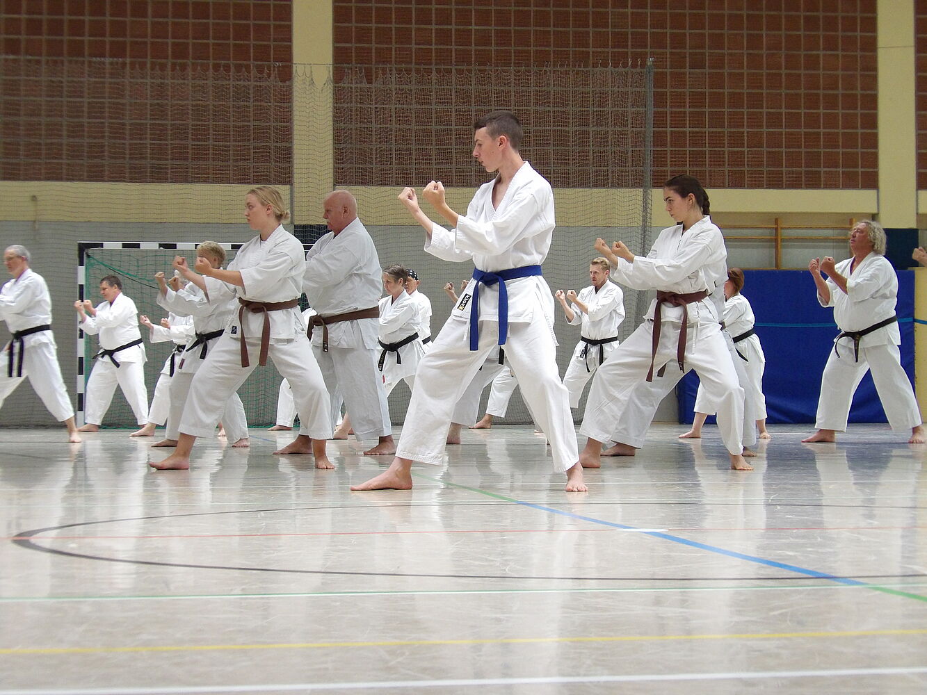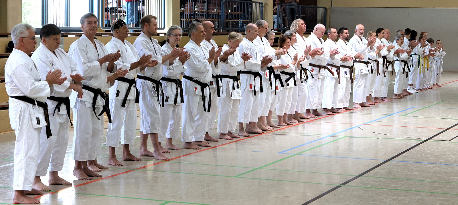 Sodann begann der Hauptpunkt der Veranstaltung, ein vom Deutschen Karate Verband e.V. bundesweit ausgeschriebener Lehrgang mit Großmeister Lothar Josef Ratschke (8. Dan). Es wurden anspruchsvolle Karate-Kombinationen und deren effektive Anwendung in unterschiedlichen Kampfsituationen geübt. Besonderer Wert wurde auf die gesundheitsbewusste und biomechanisch korrekte Ausführung der einzelnen Bewegungen gelegt. In der Oberstufe lag der Trainingsschwerpunkt auf der Kata Jion ('Liebe und Gnade') in der Unterstufe wurden Heian Shodan und Heian Nidan geübt.