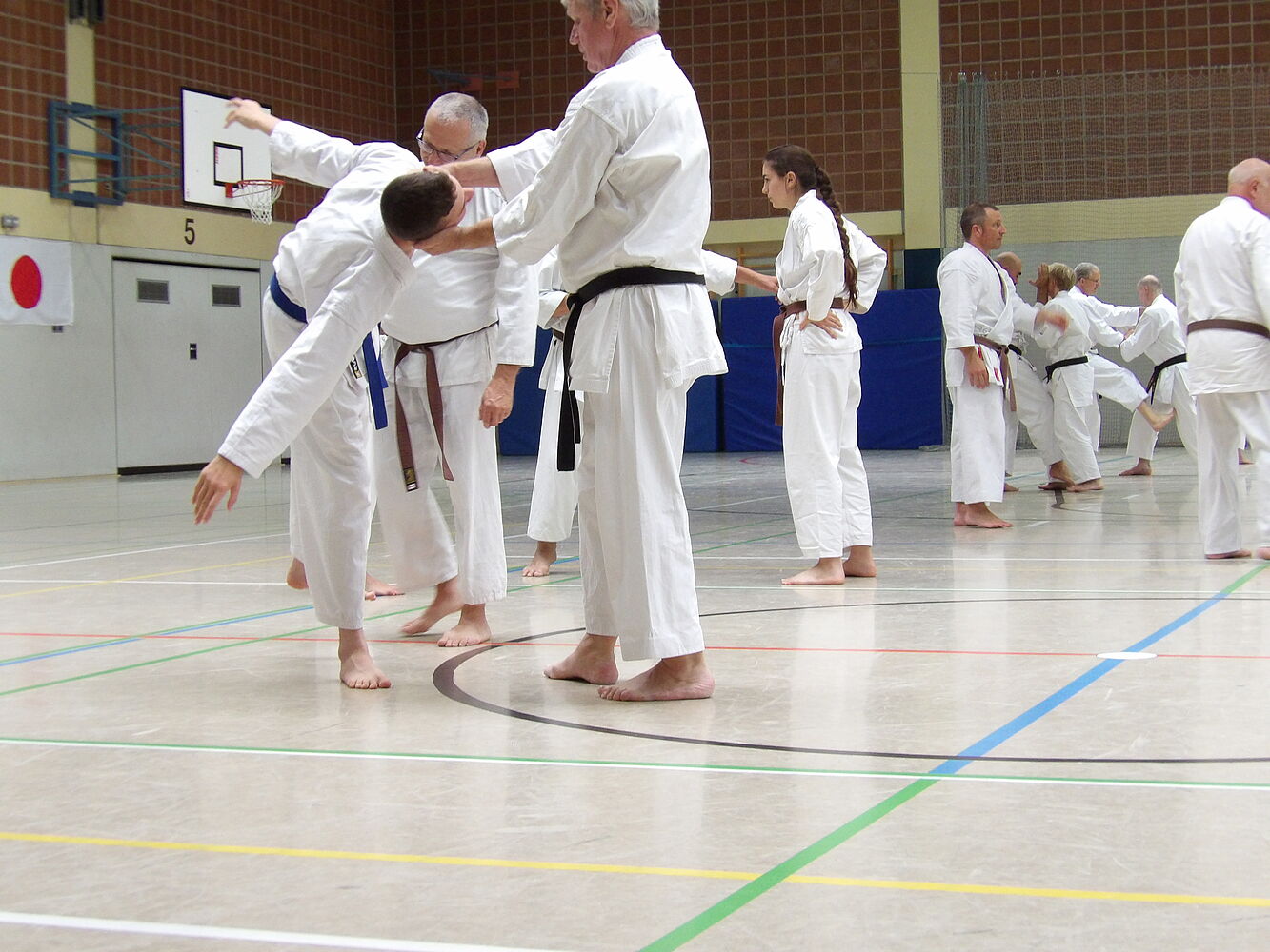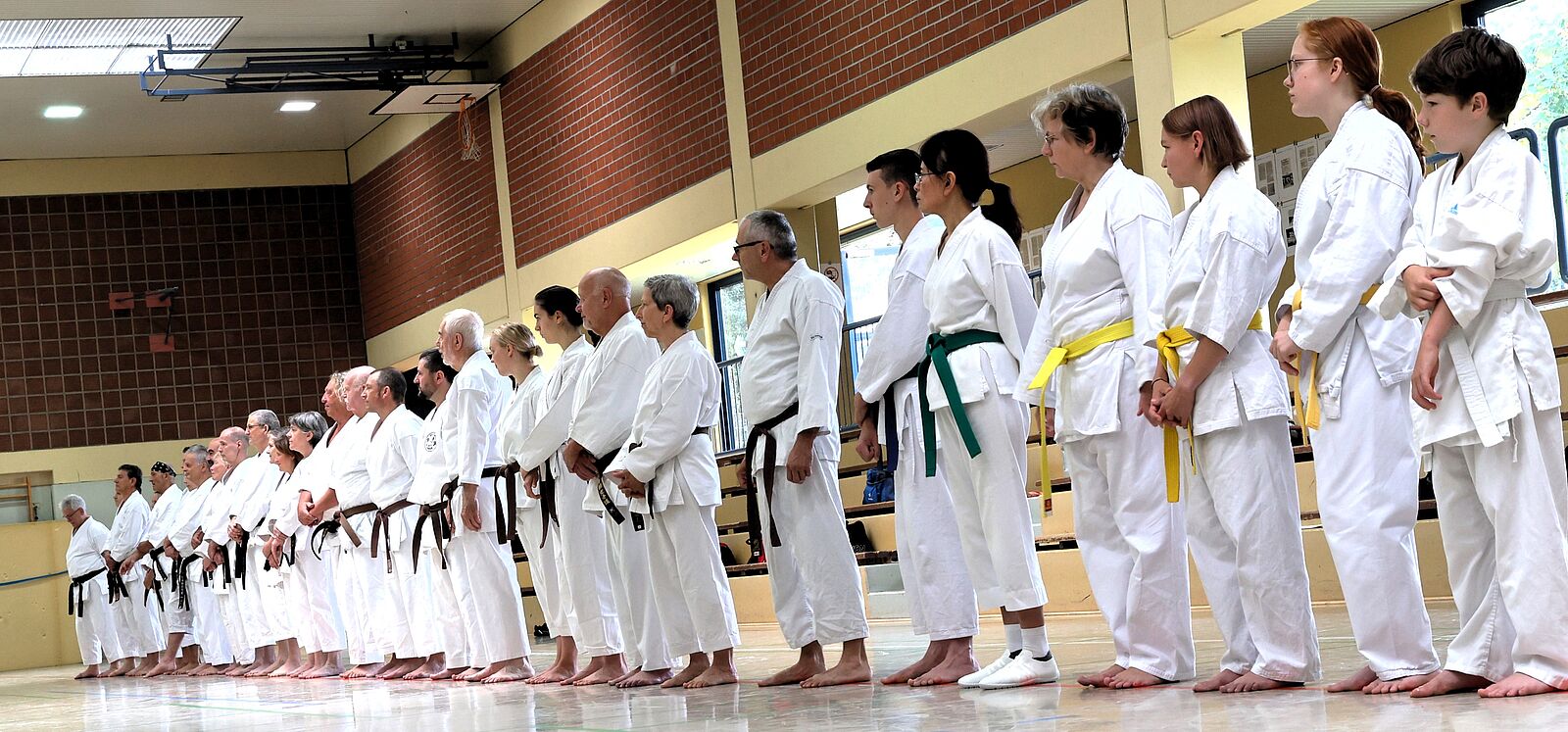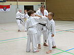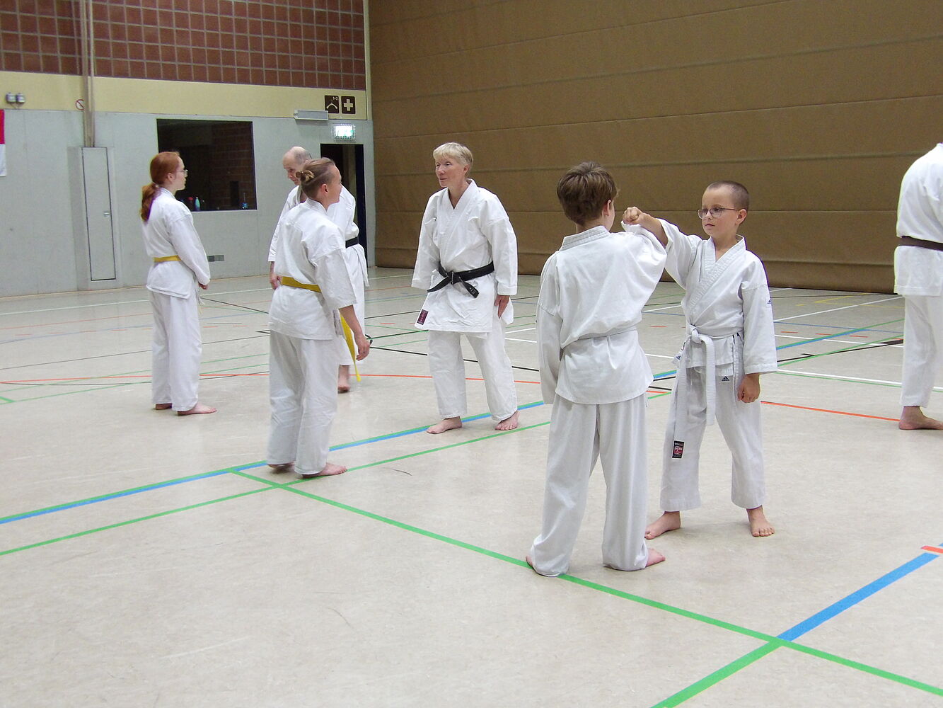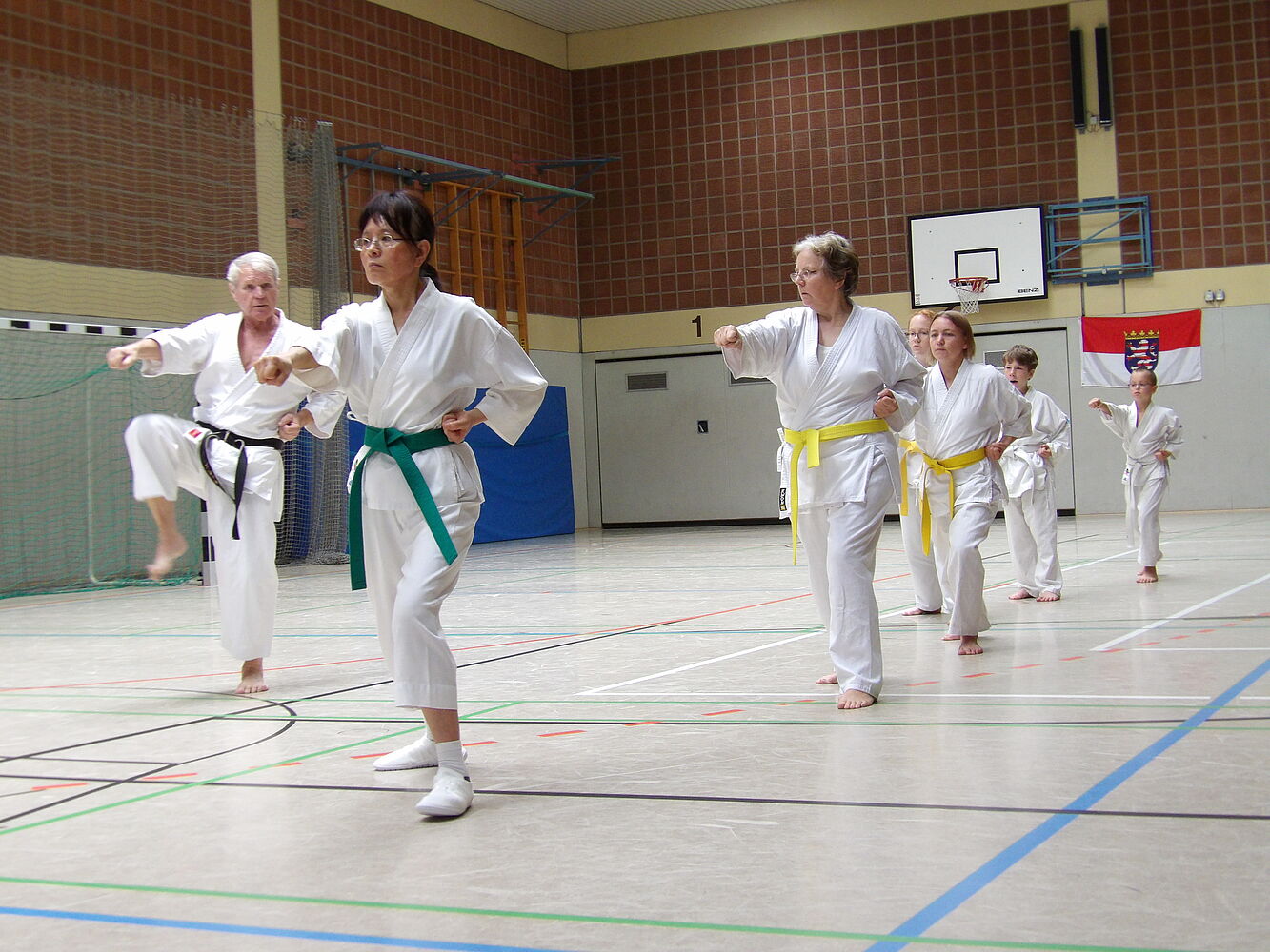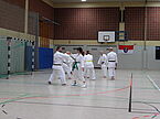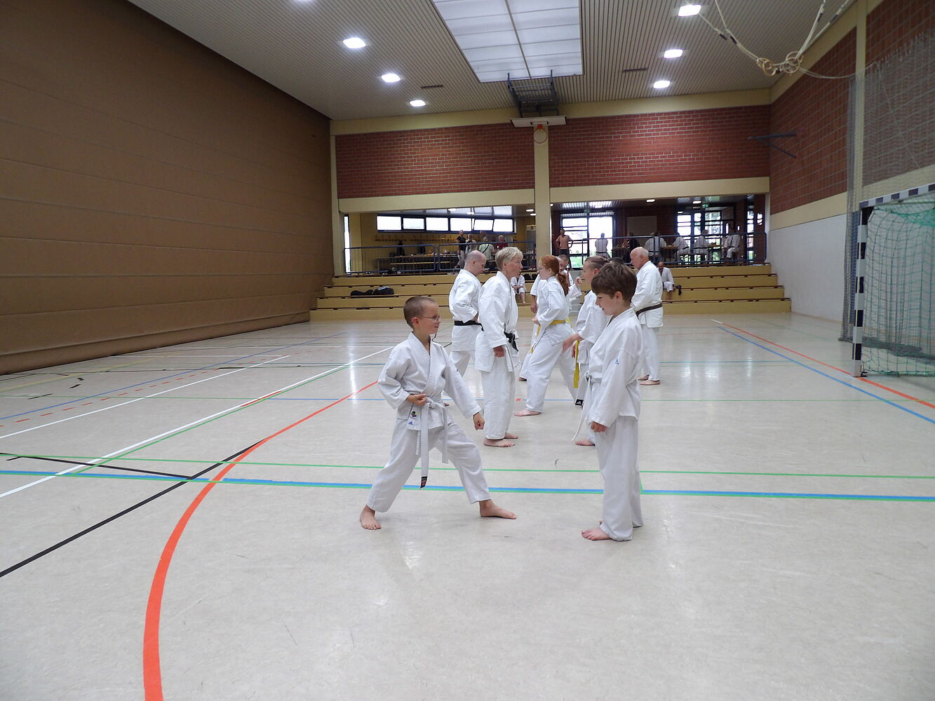 Sodann begann der Hauptpunkt der Veranstaltung, ein vom Deutschen Karate Verband e.V. bundesweit ausgeschriebener Lehrgang mit Großmeister Lothar Josef Ratschke (8. Dan). Es wurden anspruchsvolle Karate-Kombinationen und deren effektive Anwendung in unterschiedlichen Kampfsituationen geübt. Besonderer Wert wurde auf die gesundheitsbewusste und biomechanisch korrekte Ausführung der einzelnen Bewegungen gelegt. In der Oberstufe lag der Trainingsschwerpunkt auf der Kata Jion ('Liebe und Gnade') in der Unterstufe wurden Heian Shodan und Heian Nidan geübt.