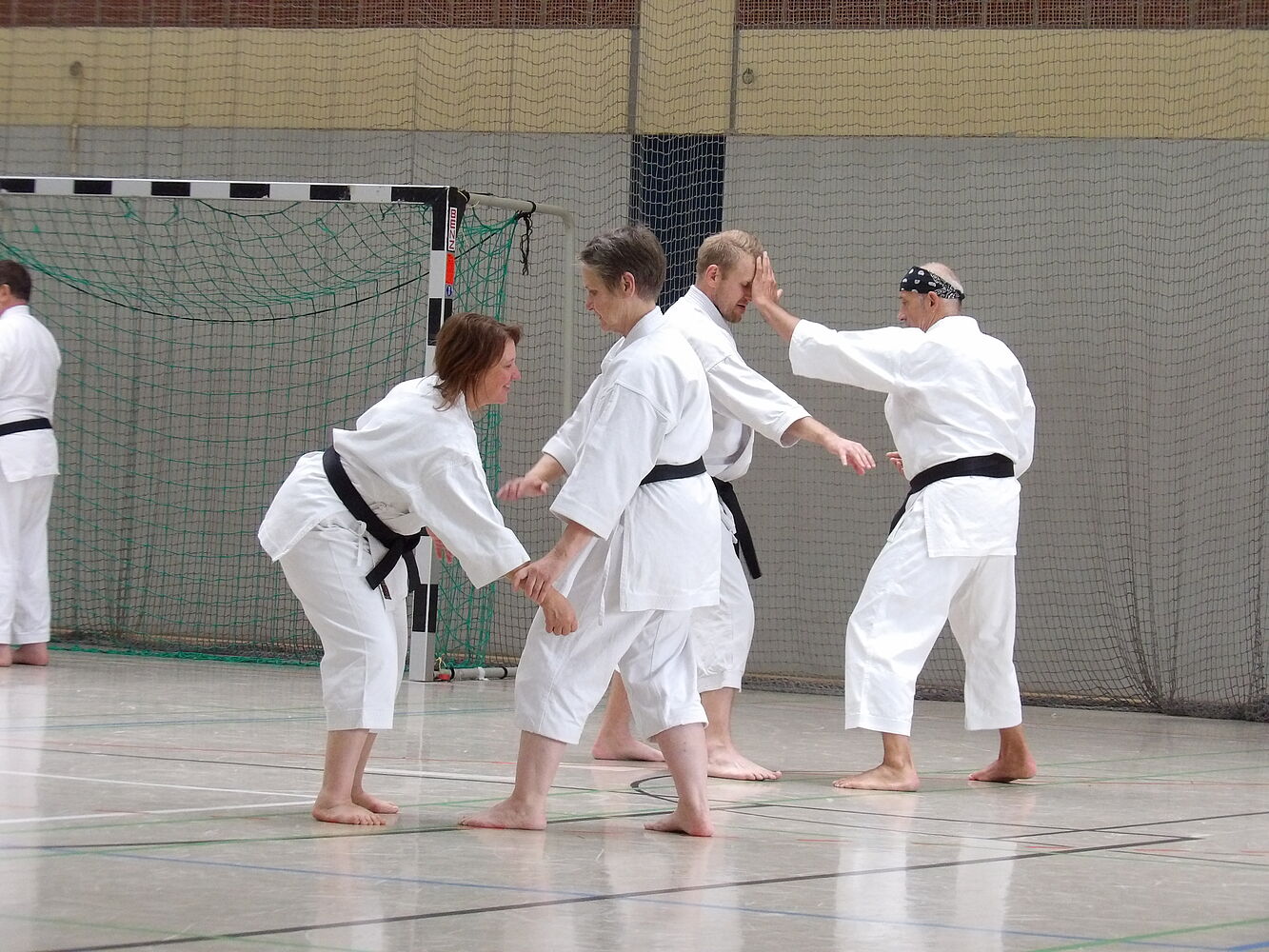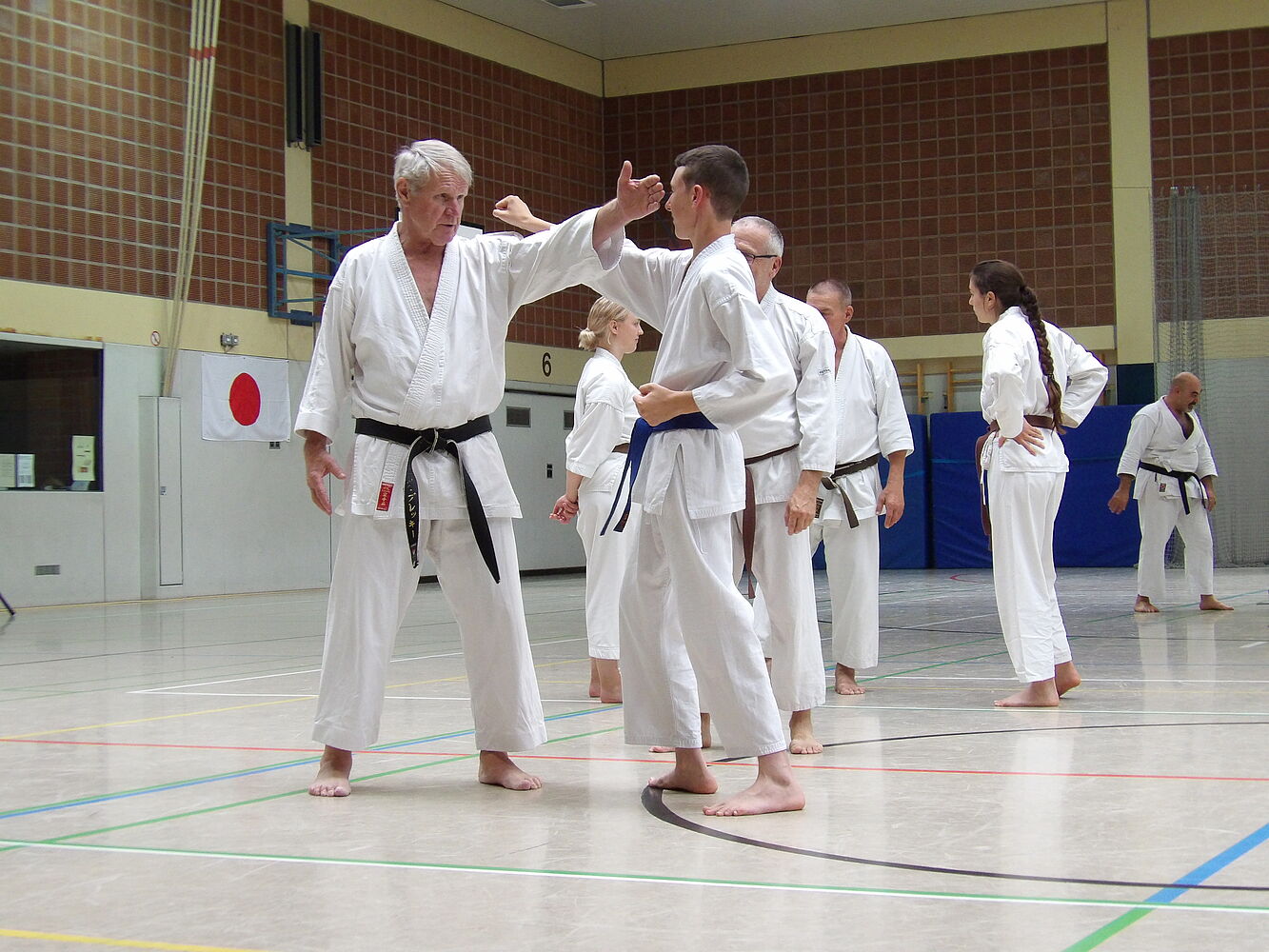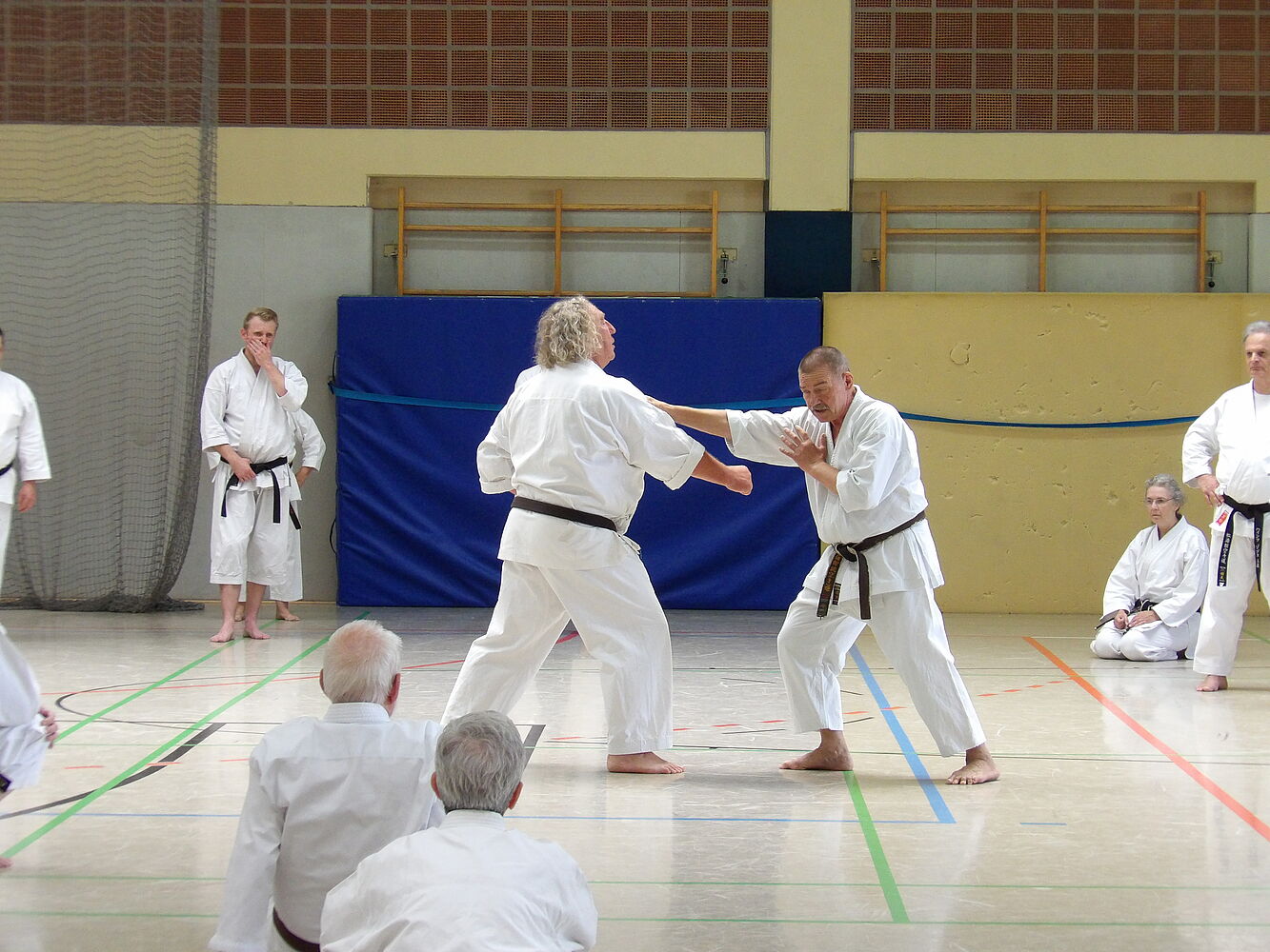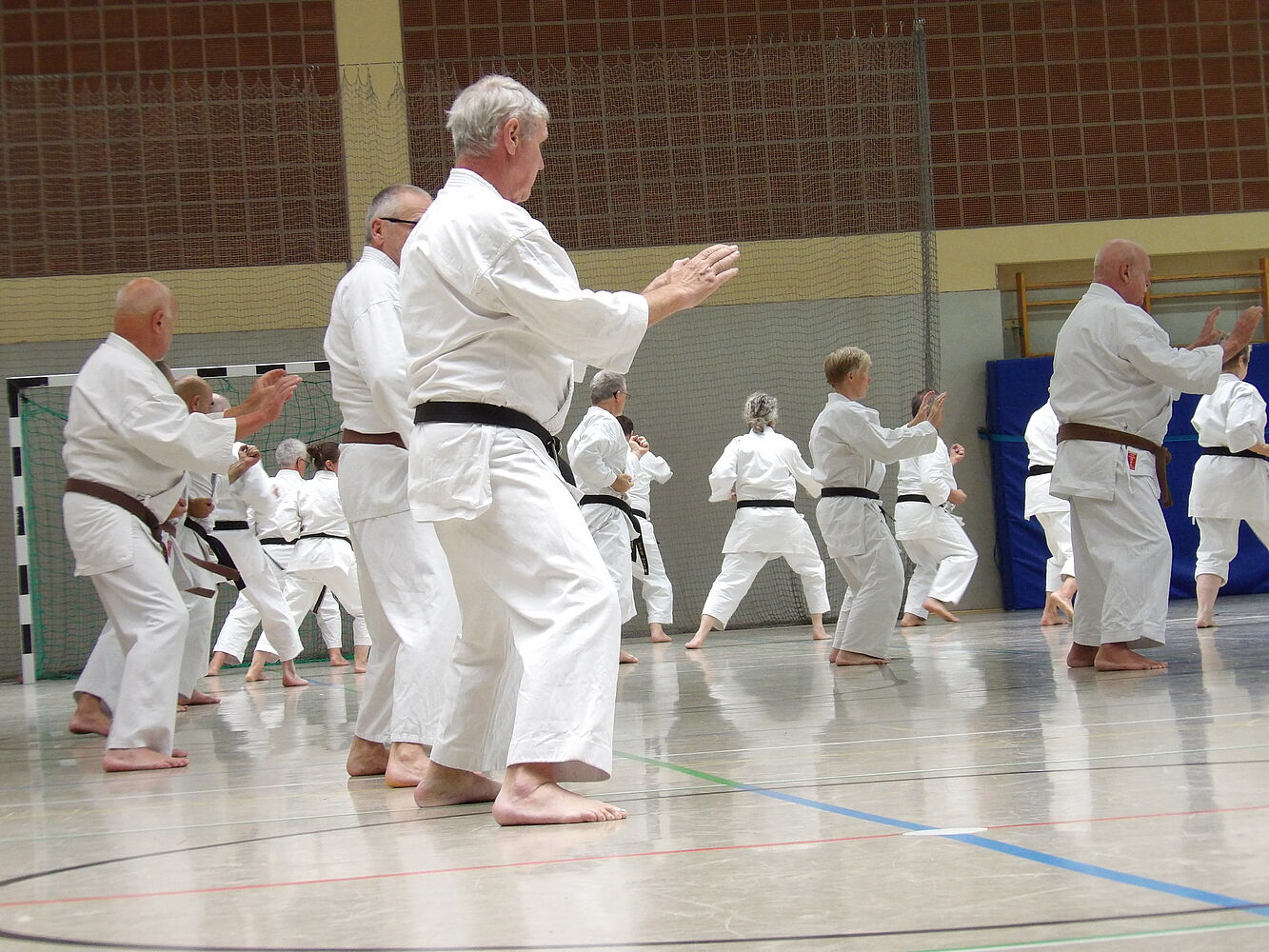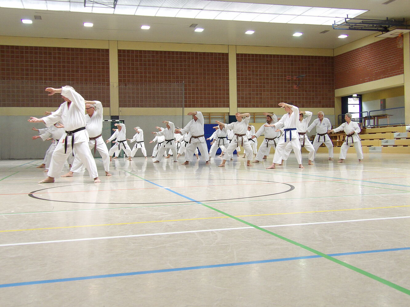 Sodann begann der Hauptpunkt der Veranstaltung, ein vom Deutschen Karate Verband e.V. bundesweit ausgeschriebener Lehrgang mit Großmeister Lothar Josef Ratschke (8. Dan). Es wurden anspruchsvolle Karate-Kombinationen und deren effektive Anwendung in unterschiedlichen Kampfsituationen geübt. Besonderer Wert wurde auf die gesundheitsbewusste und biomechanisch korrekte Ausführung der einzelnen Bewegungen gelegt. In der Oberstufe lag der Trainingsschwerpunkt auf der Kata Jion ('Liebe und Gnade') in der Unterstufe wurden Heian Shodan und Heian Nidan geübt.