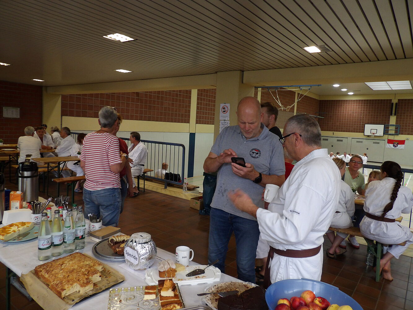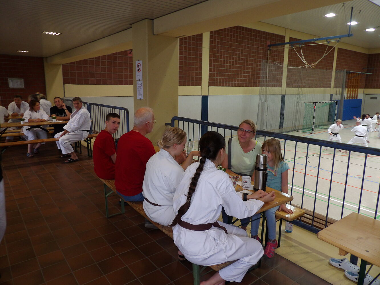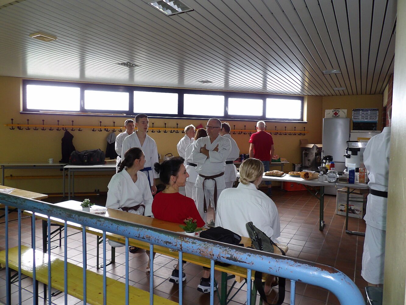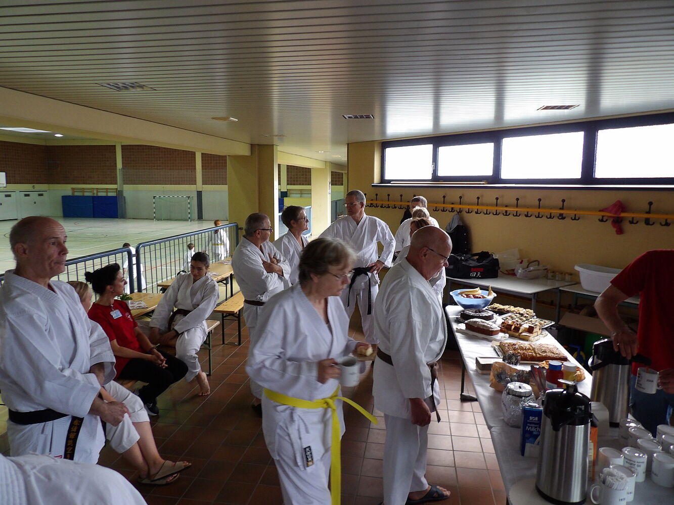 Zur Mittagspause konnten sich die Teilnehmer an einem reichhaltigen Buffet stärken und es war auch noch genügend Zeit für das persönliche Gespräch mit Mitgliedern der großen Karatefamilie aus anderen Vereinen , bevor es in die zweite Trainingseinheit ging.