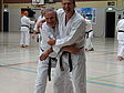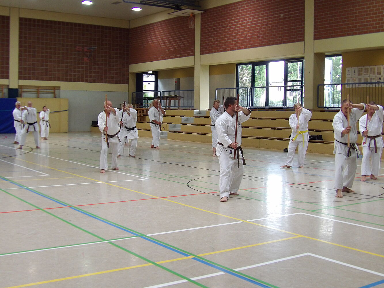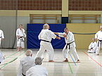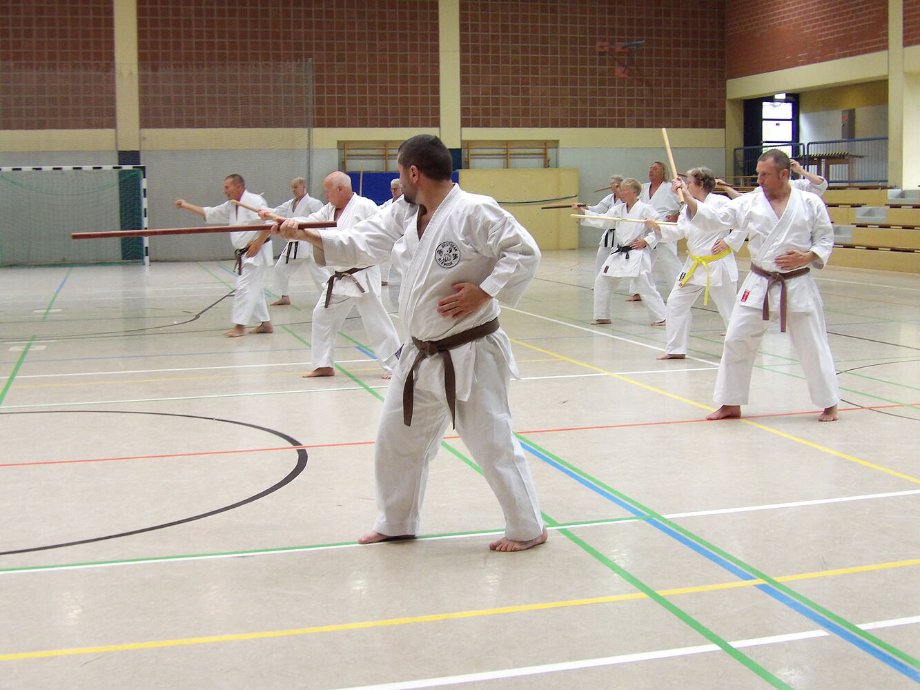 Wer nämlich noch genügend Energie besaß, konnte sich noch eine Stunde lang von Großmeister Ratschke in den Kampf mit dem Hanbo ('halber Stock', Länge ca. von der Hüfte bis zum Boden) einweisen lassen. Auch hier wurden Katas und die dazugehörigen Anwendungen gezeigt.