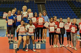Finja Mempel siegte im Hochsprung der W13 mit übersprungenen 1,33 m und wiederholte damit ihren Sieg, den sie letztes Jahr in der Freiluftsaison geholt hatte.