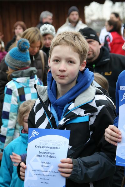 Sophia Maul entschied den Hochsprung der W15 mit 1,38m für sich. Ebenfalls im Hochsprung erzielte Sina Dörr ihren ersten Kreismeistertitel des Jahres. Sie übersprang 1,30m. Eine super Leistung zeigte Janik Huber im Hürdenlauf. Diese Disziplin war für seine Altersklasse gar nicht ausgeschrieben. Weil das Hürdenlaufen im Training aber schon gut klappt, wurde er bei den ein Jahr älteren Jungen (M12) gemeldet und hatte nach 50m die Nase vorn und wurde somit Kreismeister. Herausragende Leistungen zeigte Lutz Parzeller, der neben dem 50m Sprint auch den Sprint über 50m Hürden für sich entscheiden konnte. Mit übersprungenen 1,57m im Hochsprung und einer Weite von exakt 12,00m im Kugelstoßen sicherte er sich zwei weitere Titel.
