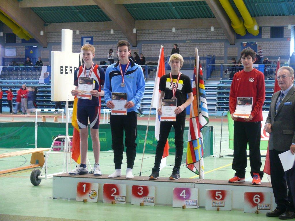 Im Hochsprung übersprang Lutz in Hanau 1.59m, was für ihn Platz zwei bedeutete. Seine Kugel landete bei 11.78m – und Lutz damit auf Platz 3. Nur zwei Zentimeter fehlten am Ende zu Platz 2. Fast hätte es im Weitsprung zur Komplettierung des Medaillensatzes gereicht… Bis zum letzten Sprung machten Lutz und sein Konkurrent Andreas Bechmann aus Frankfurt es spannend: Am Ende standen für beide Jungen 5,31m als beste und 5,29m als zweitbeste Weite zu Buche. Letztlich entschied der beste dritte Versuch über den Ausgang der Meisterschaft. Da Alexander Bechmann die bessere dritte Weite zu verzeichnen hatte, musste Lutz sich am Ende geschlagen geben – durfte sich aber natürlich über einen weiteren zweiten Platz freuen.