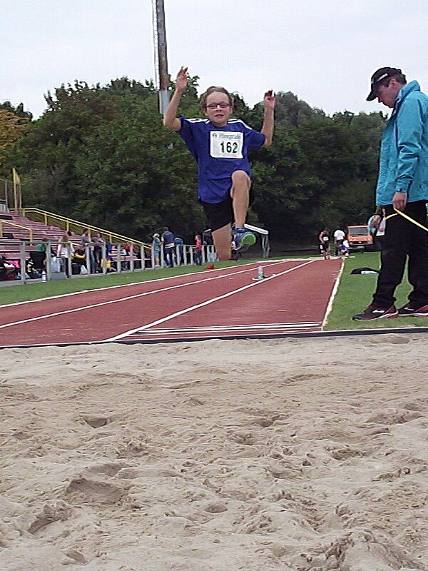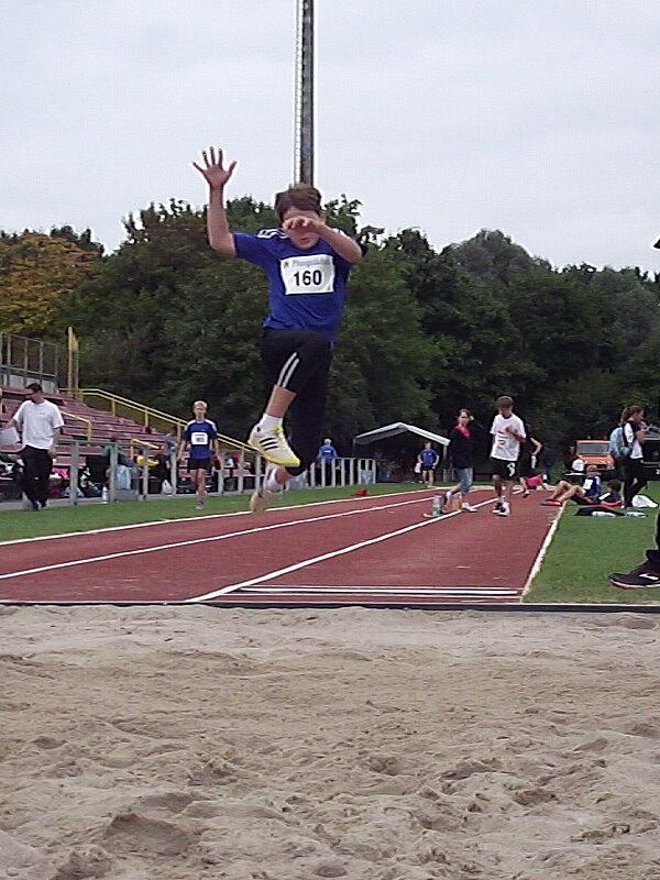 Paul Riedel überzeugte zum Saisonende nocheinmal mit Bestleistungen im Weitsprung (5,24m) und über die 80m Hürden (12,13s). Im Hürdenlauf war er der Zweitschnellste seiner Altersklasse. Im Kugelstoßen erreichte er mit 11,75m Platz 5 und trug so weitere Punkte zum Gesamtergebnis der männlichen U16 bei. In der abschließenden Staffel sicherte er sich gemeinsam mit Jan Bachmann, Marc Ludwig und Phillipe di Stefano die schnellste Zeit des Tages. Am Ende konnten die Jungs über den Sieg in ihrer Altersklasse jubeln.