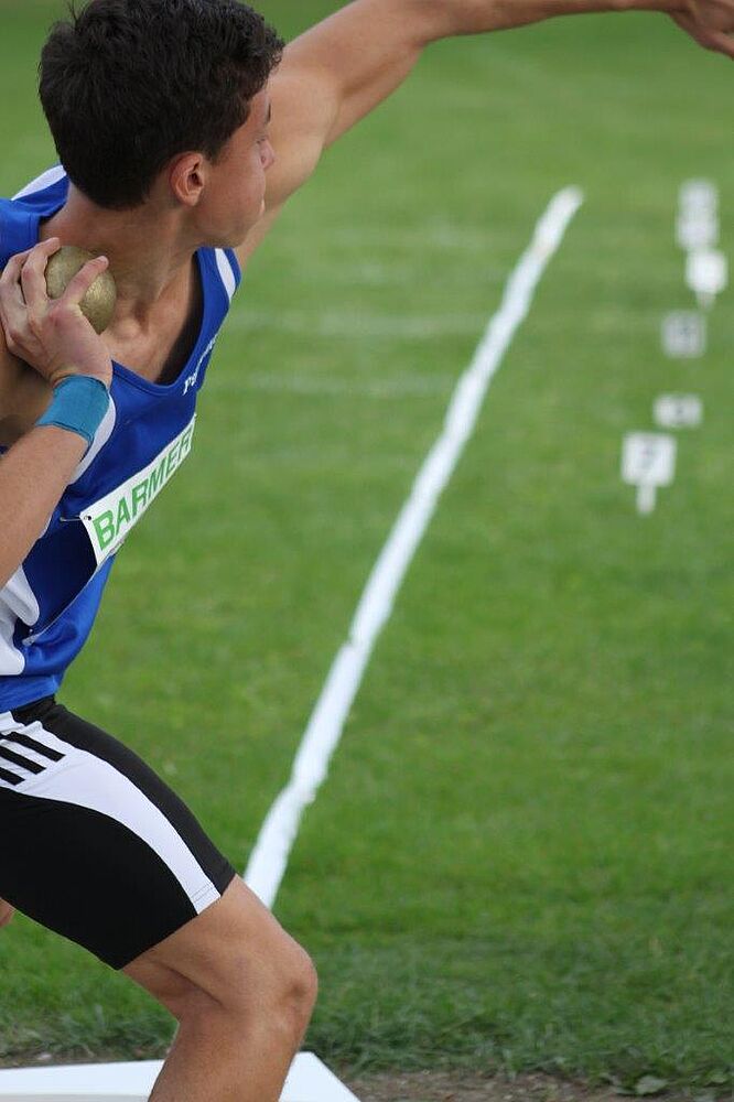 Wegen einer Verletzung am rechten Daumen war vor Wettkampfbeginn allerdings weder den Trainern noch Lutz selbst klar, welche Leistungen möglich sein würden. In der ersten Disziplin - dem Kugelstoßen - kam der 14jährige mit 12,63m nah an seine persönliche Bestleistung heran und legte so eine gute Basis für den späteren Erfolg. Im anschließenden 80m-Hürdensprint passte dann der Anlauf an die erste Hürde nicht, sodass Lutz alle Hürden mit den „falschen“ Bein nehmen musste. Die Zeit von 12,06s ist daher als starke Leistung einzuschätzen. Im Weitsprung ließ er mit 5,61m eine solide Weite folgen, mit der er sich bereits unter die Top 5 vorschieben konnte. Ein verhaltener Start über 100m und die Zeit von 12,62s ließen Lutz leicht hinter die Führenden zurückfallen. Gut gelaunt, aber dennoch immer mit der nötigen Konzentration ging es dann zur letzten Disziplin: dem Diskuswurf. Gleich im ersten Versuch flog die 1kg schwere Scheibe auf 41,95m und somit zwei Meter weiter als Lutz‘ bisherige Bestleistung.