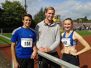 Besonders erfolgreich war Lutz Parzeller in der M14. Nachdem er auf den Endlauf im 100-Sprint verzichtet hatte, um sich voll und ganz auf den Weitsprung konzentrieren zu können, sprang er hier überragende 6,06m und sicherte sich damit den Titel in dieser Altersklasse. Am zweiten Tag der Meisterschaften lies er im Hürdenlauf, Kugelstoßen und Diskuswurf gute Leistungen folgen. Durch eine deutliche Verbesserung seiner persönlichen Bestleistung über 80m Hürden auf 11,82s konnte er sich hier Platz 2 sichern, was im Kugelstoßen mit 12,10m ebenfalls gelang. Im Diskuswurf reichten 32,85m für einen guten fünften Platz. Ein Jahr älter ist Paul Riedel, der über 100m, 80m Hürden, Kugelstoßen und im Diskuswurf an den Start ging. In einem sehr starken Feld reichten die persönlichen Bestzeiten von 12,50s über 100m und 12,40s über 80m Hürden nicht für den Einzug in die nächste Runde. Im Kugelstoßen kam Paul mit 11,09m nah an seine Bestleistung heran und wurde Zehnter. Im Diskuswurf bedeuteten 28,19m Platz 14.