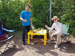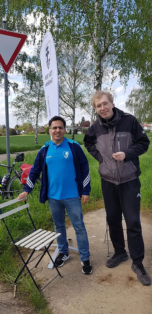 Und es gilt auch: kein Volksradfahren ohne die Abteilung Taekwondo! Seit vielen Jahren ist es bei uns Tradition, gemeinsam mit dem VVV die Streckenposten zu stellen. Dort können die fleißig Strampelnden ihre Teilnehmerkarten abstempeln lassen und sich beim Verweilen mit kühlen Getränken erfrischen. Abteilungsleiter Assad übernahm mit Josef den Streckenposten Nummer 2 für die 40-km-Runde, Markus und Benjamin hingegen erwarteten am Streckenposten 3 alle Rad-Begeisterten sowohl der 20- als auch 40-km-Strecke.