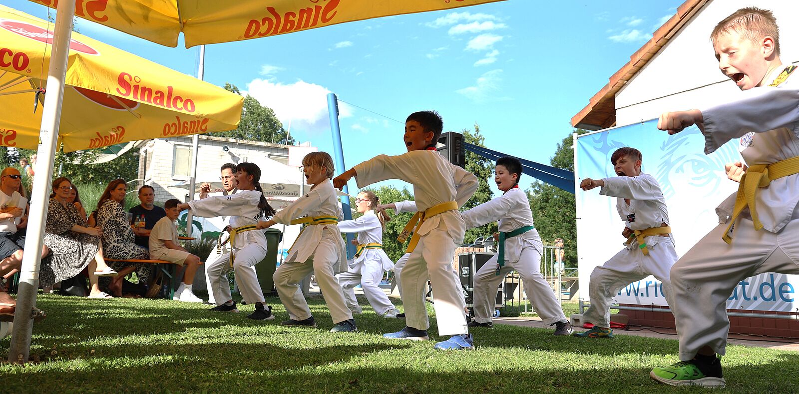 Anlässlich der Riedstädter Jugendsportlerehrung 2024 im Freibad Goddelau zeigte unsere Abteilung Taekwondo wieder einmal, was in ihr steckt! In einer schlagkräftigen Vorführung demonstrierten einige unserer Taekwondo-Schülerinnen und -Schüler gemeinsam mit Trainer Assad, wie das Training der Kindergruppe aussieht.