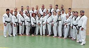 30 erfahrene und Taekwondo-begeisterte Schwarzgurte schulten sich diesen Sonntag in der Bensheimer Nibelungenlandhalle in ihren Fähigkeiten als Kampfrichter - mit dabei unser Meister und Abteilungsleiter Assad Mohebbi. Mit dem Fokus auf Techniken und Poomsae (Formenläufe) gaben die Referenten und WT Poomsae Referees Daryoush Hassanzadeh und Dr. Nuri M. Shirali ihr Wissen und ihre Erfahrung weiter. Key-Points, Details und das Vertiefen des Ablaufes der einzelnen Poomsae nach dem neusten WT/Kukkiwon-Standard sowie die Bewertungsgrundlage für Poomsae & Free Style standen auf dem Programm. Für unseren Trainer Assad bildete der Lehrgang den letzten Meilenstein auf seinem Weg zum Erwerb der Trainer-C-Lizenz; gleichzeitig verlängerte Assad mit der Schulung seine Lizenz als Punktrichter.