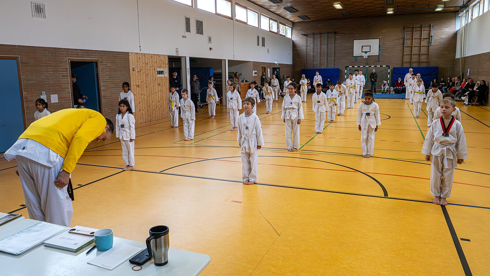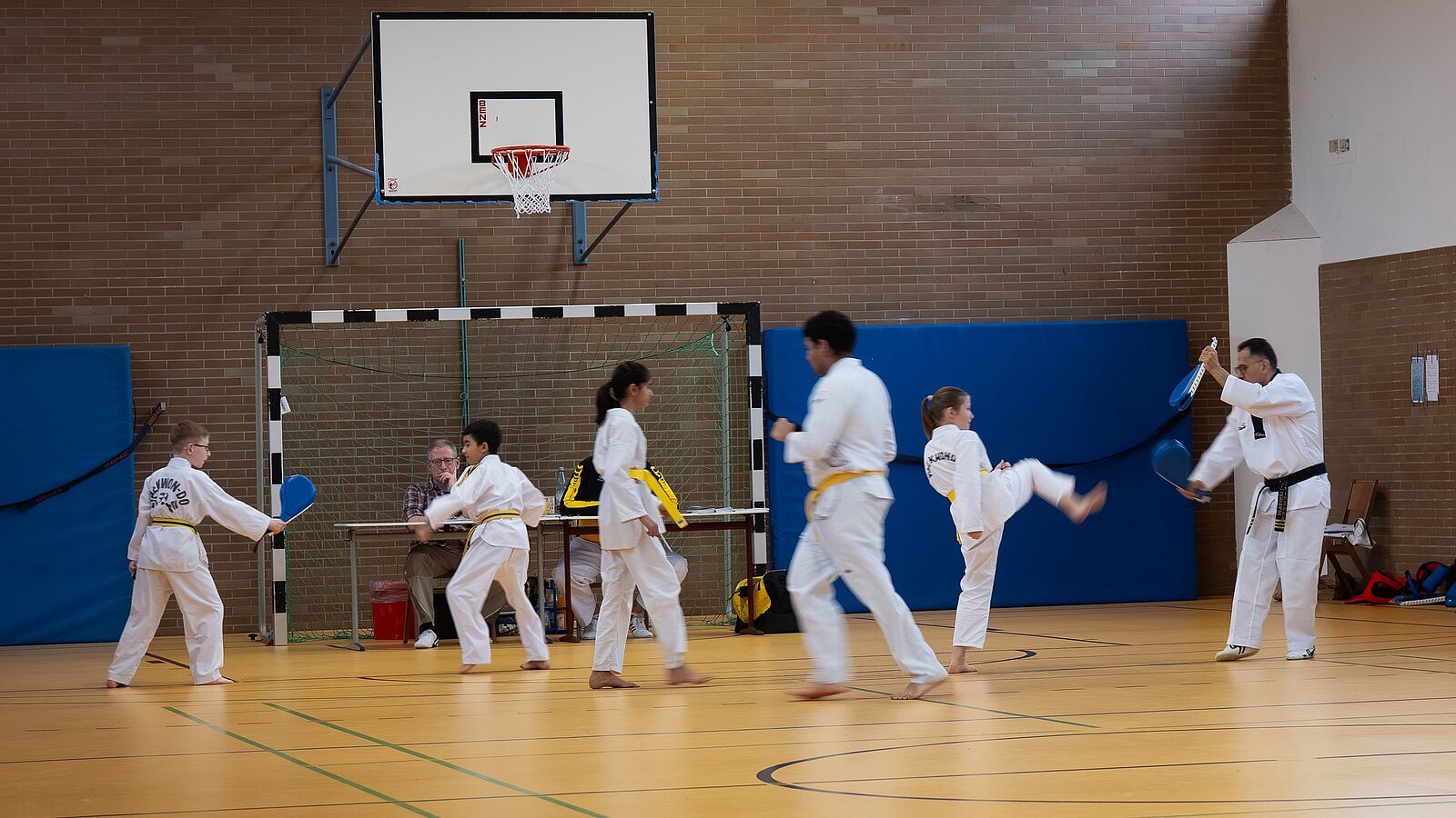Anschließend wurde es spannend - auch für die anwesenden Eltern: Die einzelnen Schülerinnen und Schüler zeigten im Rahmen verschiedener Übungen und Aufgaben, was sie in den vergangenen Monaten von ihrem Trainer, Herrn Assad Mohebbi (2. Dan Taekwondo), gelernt haben.