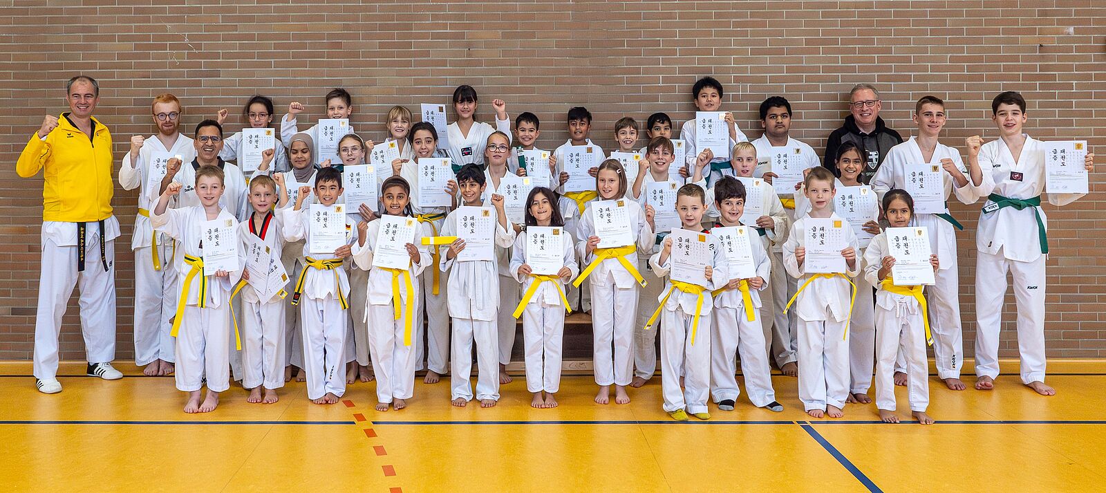 Insgesamt führten 19 Taekwondo-Schülerinnen und -Schüler im Alter von 7 bis 12 Jahren und ein Erwachsener ihr Können im Rahmen verschiedener Übungen und Aufgaben vor und zeigten damit, was sie in den vergangenen Monaten von ihrem Trainer, Herrn Assad Mohebbi (3. Dan Taekwondo) und der unterstützenden Mitarbeit von Herrn Eskandar Ghorban (ebenfalls 3. Dan Taekwondo) gelernt haben. Am Prüfungsende gab Prüfer Carsten Gauger bekannt, wer sein Prüfungsziel erreicht hatte und nun den nächsthöheren Gürtel tragen darf.