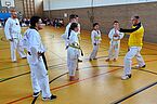 Um 10:00 Uhr startete mit Aufwärmtraining und anschließendem Lehrgang die Kindergruppe Insgesamt zwölf Schülerinnen und Schüler konnten hier unter Aufsicht und Anleitung von Herrn Dr. Shirali nochmals verschiedene Bein- und Armtechniken wiederholen und intensivieren, ebenso die Formenläufe wie beispielsweise Taeguk Il-jang.