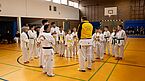 Unabhängig vom Gürtelgrad begann der Tag für alle mit den "Basics". Die Grundschritte und -stellungen wurden wiederholt, ebenso die grundlegenden Blöcke und auch der einfache Faustschlag. Hinsichtlich der korrekten Ausführung und der Präzision bei den Bewegungen konnten die Teilnehmenden bereits hier Neues dazulernen. Nach einer kurzen Pause wurden schließlich die Formenläufe der Reihe nach einer nach dem anderen vertieft. Im Anschluss, angepasst auf die nach Gürtelgraden sortierten Kleingruppen, konnten die Teilnehmenden die für sie jeweils relevanten Poomsae besonders ausführlich trainieren und Fehler korrigieren. Im letzten Drittel des Lehrgangs schließlich löste man sich von den strengen Technikabfolgen und spielte in Partnerarbeit Selbstverteidigungssituationen durch. Grundlage für die Selbstverteidigung bildeten aber dennoch Bewegungsmuster aus den Formenläufen, wie Martin Wroblinski eindrucksvoll demonstrierte.