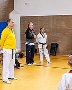 Geleitet wurde die Veranstaltung von Experten ihres Fachs, darunter zwei internationale WT-Kampfrichter: Dr. Nuri M. Shirali (7. Dan), zudem internationaler Kukkiwon-Instructor und Präsident der Hessischen Taekwondo Union (HTU), sowie Daryoush Hassanzadeh (7. Dan), außerdem Kampfrichterreferent der HTU für Poomsae, kümmerten sich mit Blick für's Detail um die Vermittlung der Techniken in den Formenläufen. Unterstützt wurden sie dabei von Pia Adamus (1. Dan), die die Poomsae wiederholt präzise durchlief und den Teilnehmenden dadurch verständlich veranschaulichte. Martin Wroblinski (5. Dan), Taekwondo-Lehrer im TV Seulberg und Vizepräsident der HTU für Breitensport, organisierte den Lehrgang maßgeblich und vermittelte die Selbstverteidigungsanwendungen der Formenläufe.