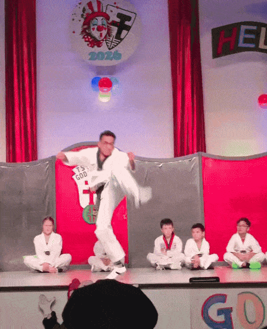 Zur Kinderfastnacht des TSV Goddelau am Sonntag galt: Je mehr Verkleidung, desto besser! Doch einige “Verkleidete” in der Christoph-Bär-Halle sahen etwas anders aus… in strahlend weißen Doboks (Taekwondo-Anzügen) demonstrierten auf der Bühne neun unserer Schülerinnen und Schüler ihre Fertigkeiten im Taekwondo. Choreographiert und geleitet hat diese starke Vorführung unser Trainer und Abteilungsleiter Assad Mohebbi.