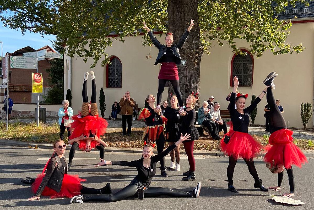 Die Trainerinnen Jana und Virginia tanzen selbst auch in der Gruppe mit und freuen sich über Anfragen für Auftritte auf Festen und Veranstaltungen sowie über Zuwachs für die Gardegruppe.