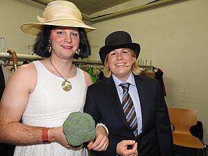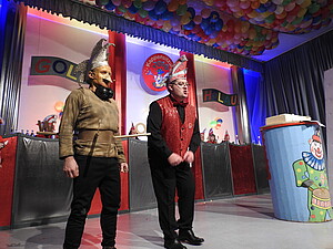 Ein absolutes Highlight war der Vortrag von Clemens und Philipp Klink. Als Kätha und Karl, ein Ehepaar, das schon über 50 Jahre verheiratet und nicht mehr ganz taufrisch ist, wünscht Karl u. a. seiner Ehefrau, dass sie unbedingt vor ihm stirbt. Karl hofft, dass seine Angetraute einen Trauerkranz bei einer Beerdigung auffängt, damit sie die nächste ist. Im Gegenzug schwärmte Käthe von rassigen Italienern, neben denen Karl als Mast-Bulle schlecht abschneidet. Standing Ovation gab es hier vom Publikum, insbesondere für den erst 13jährigen Philipp, der hier in einer Paraderolle glänzte. Erwähnt werden sollte hier, dass ein Familienmitglied – Bert Klink – dem Vater-Sohn-Duo diesen Vortrag quasi auf den Leib geschneidert hatte. Das passende Outfit unterstrich diesen Vortrag. Der Wunsch auf ein Wiedersehen im nächsten Jahr wurde ausdrücklich vom Präsidenten und vom Publikum betont.