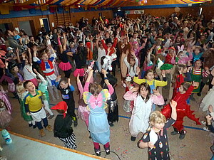 Hochbetrieb herrschte beim Narrenkinderfest am Fastnachtdienstag. Für Unterhaltung sorgten Auftritte der Dancing Queens und Moglis, die mit ihren Tänzen die kleinen und großen Zuschauer begeisterten. DJ Pasquale animierte die jungen Fastnachter zum Tanzen und zur Polonaise durch den Saal der Christoph-Bär Halle. Die Kinder und auch die Erwachsenen hatten dabei sehr viel Spaß.