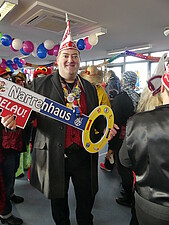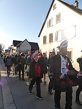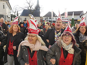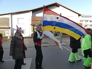 Bei tollem Wetter und bester Stimmung trafen sich die Fastnachter auf dem Goller Kerweplatz, um gemeinsam mit Tschingderassabum und Helau zum Rathaus zu marschieren. Dort wurden die Riedstädter Narren von Bürgermeister Marcus Kretschmann und den Verwaltungsbediensteten bereits erwartet. Nach einem Wortgefecht mit den Sprechern der Riedstädter Karnevalsvereine rückte der Bürgermeister den überdimensionalen Schlüssel zum Rathaus heraus und die Narrenfahne wurde gehisst.