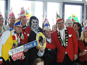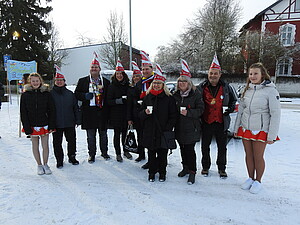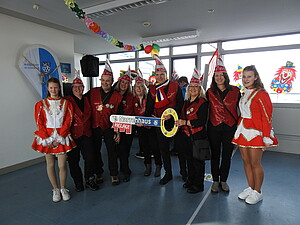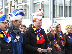 Unter der Führung von Leeheims Sitzungspräsident Patrick Fiederer eroberten die gut gelaunten Narren den überdimensionalen Schlüssel. Die Fastnachter waren hier deutlich in der Überzahl und stießen auf wenig Gegenwehr. Unser Sitzungspräsident Alexander Schaper sorgte auch hier zusammen mit seinem Elferrat für gute Laune.