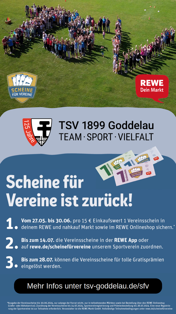 Die Aktion „Scheine für Vereine“ bei REWE findet im Aktionszeitraum vom 27.05.-30.06.2024 statt und wir sind wieder mit dabei.