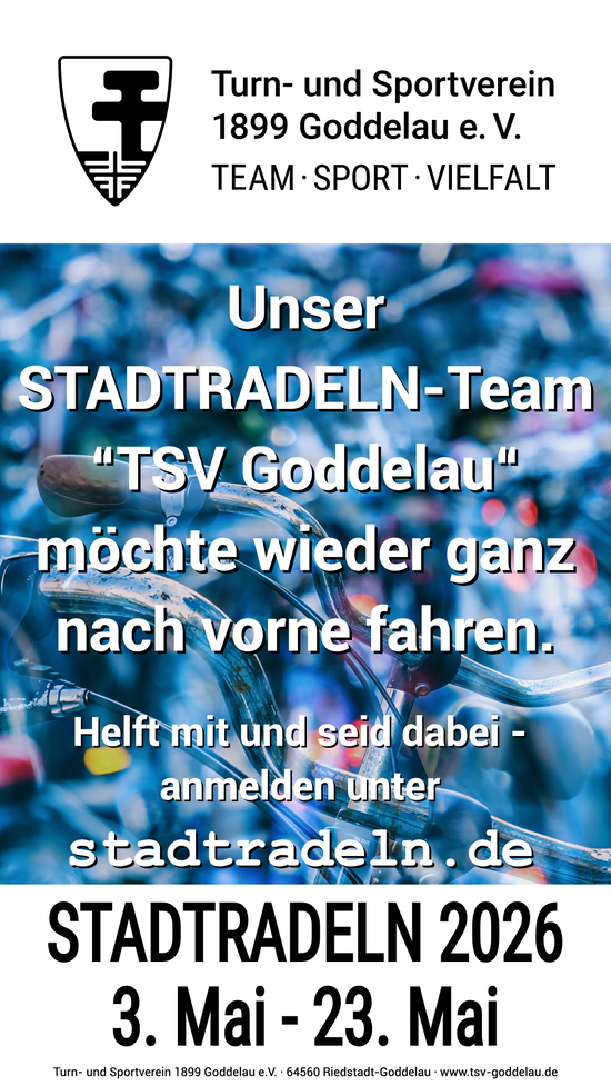 Eine Anmeldung zum Team des TSV Goddelau ist unter folgendem Link möglich: www.stadtradeln.de/kreis-gross-gerau