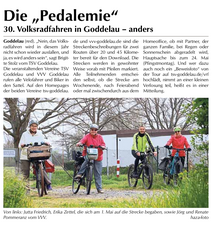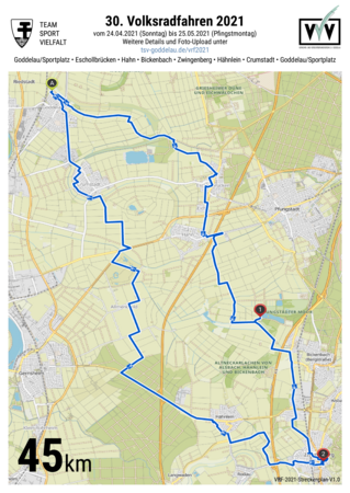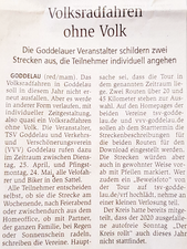 In der Vorstandssitzung Anfang April stand zunächst noch die Absage des 30. Volksradfahrens auf der Tagesordnung. Aus einer Idee entwickelte sich dann aber eine kleine Erfolgsgeschichte. Die ausrichtenden Vereine TSV und VVV Goddelau wollten das Volksradfahren eben nicht schon wieder absagen müssen und so wurde in kürzester Zeit ein Alternativprogramm unter dem Motto „Pedalemie – Volksradfahren anders“ organisiert: zwei Strecken und eine Zeit von vier Wochen, um daran teilzunehmen.