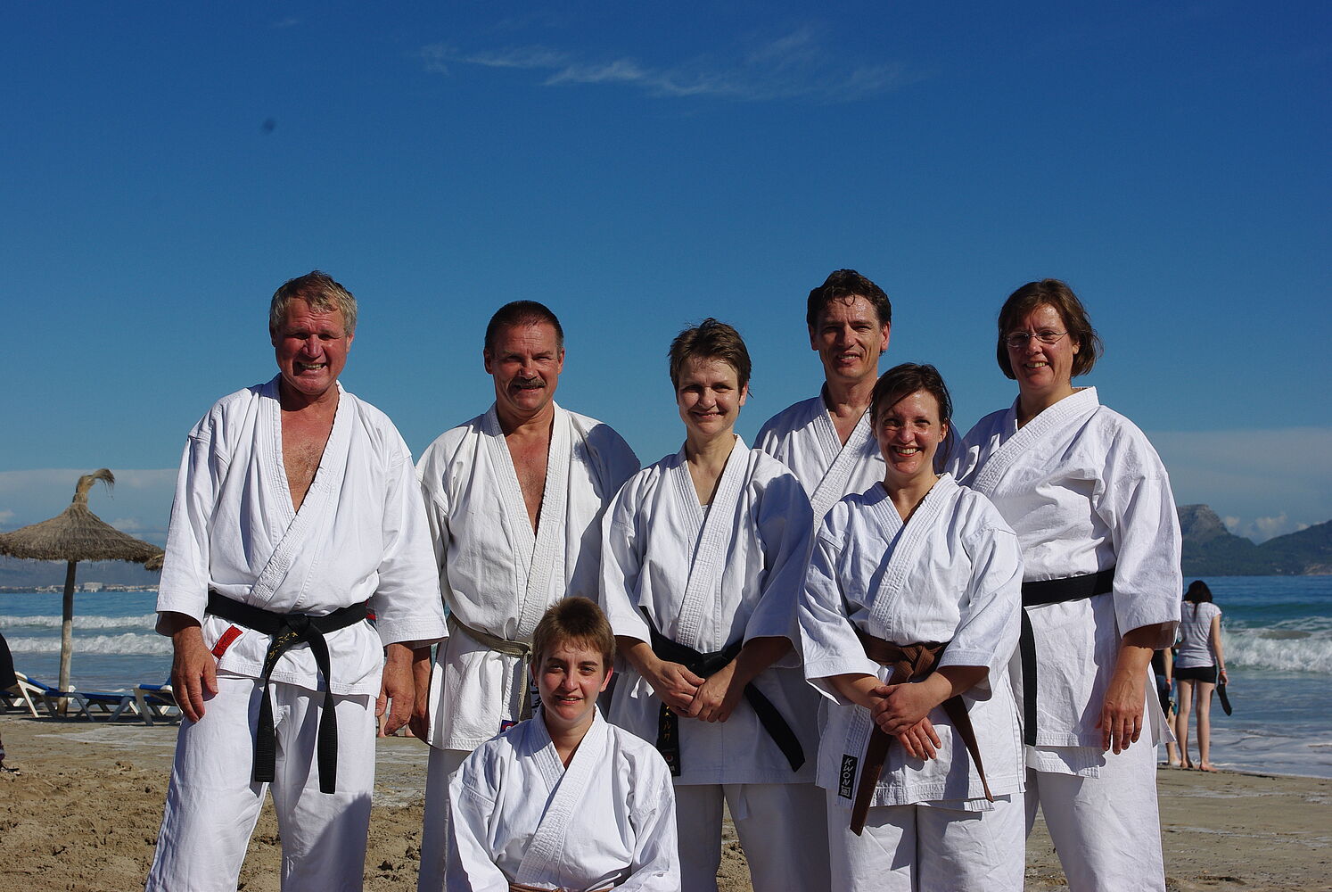 Bild: von links Prüfer Andre Wehnert, Wolfgang Brzezicki Prüfung auf Mallorca 06.05.2016 zum 5. Dan und Prüfer Lothar Ratschke.