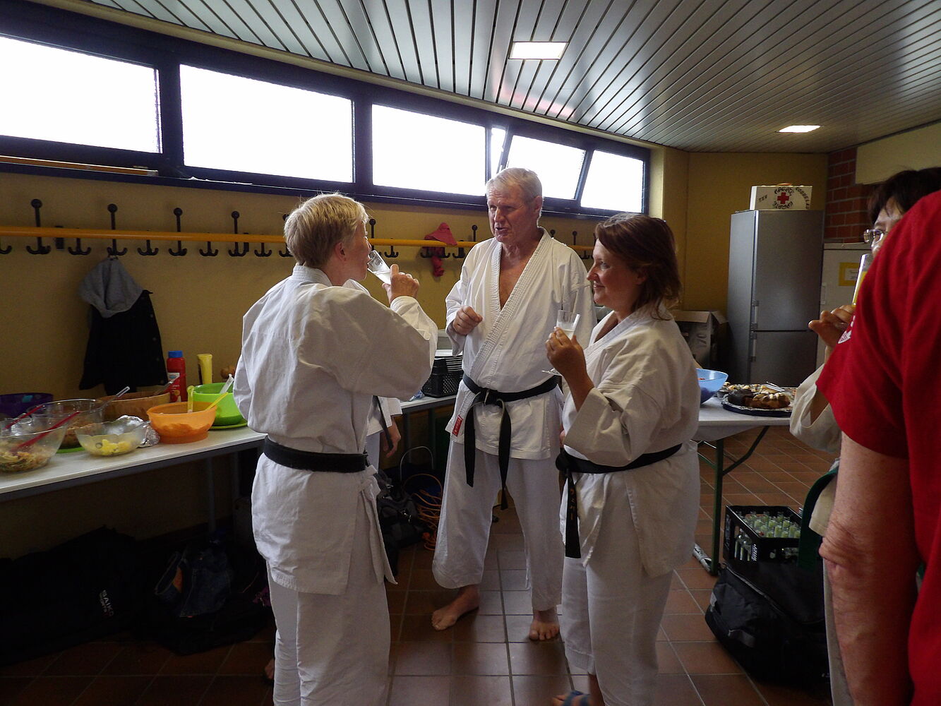 Der Dojoleiter dankte den Teilnehmern für ihr Kommen und den Dojo-Mitgliedern und Helfern für ihren Einsatz, durch den eine solche Veranstaltung erst möglich wird. Er lud abschließend auf ein Glas Sekt ein, was jedoch viele erst nach dem optionalen Hanbo- Training in Anspruch nahmen.