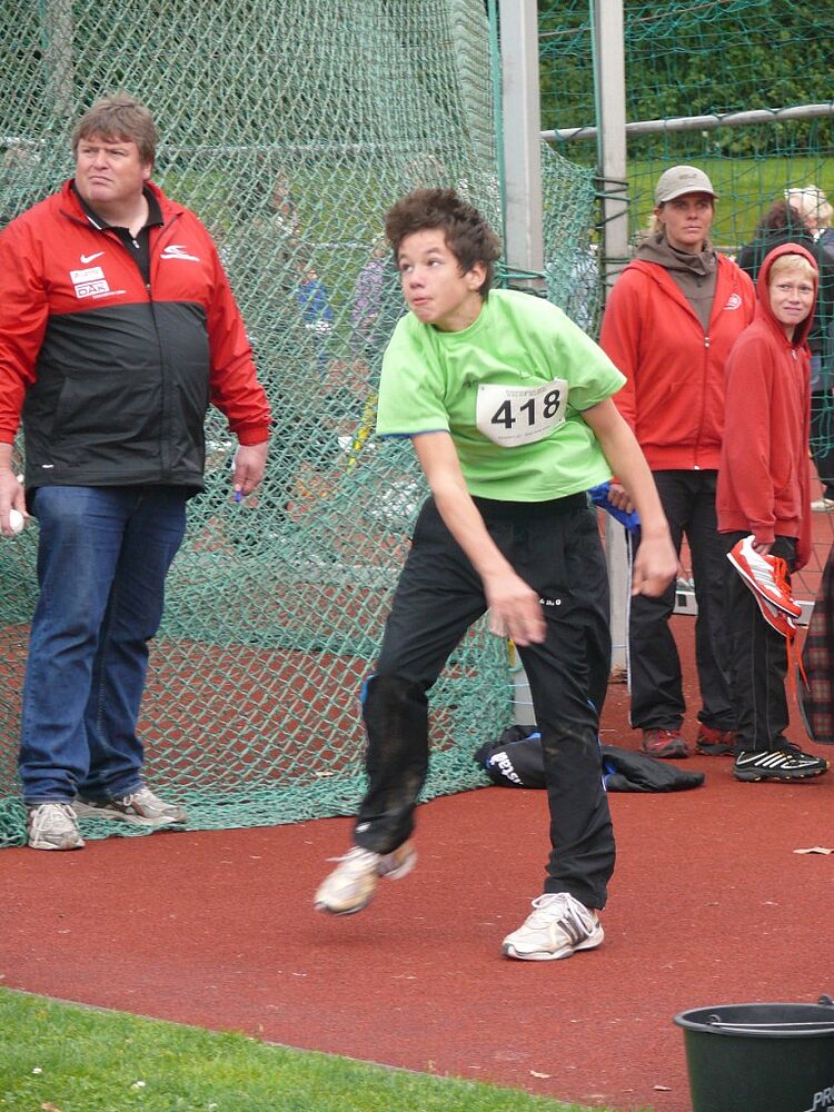 Lutz Parzeller legte im Ballwurf eine saubere Serie mit sechs Würfen über 60m hin. Nachdem er im ersten Versuch seine vor zwei Wochen aufgestellte Bestleistung (62,50m in Bruchköbel) um erstaunliche 5m auf 67m steigerte, verpasste er im letzten Versuch die 70m-Marke nur um einen halben Meter. Mit hervorragenden 69,50m führt er nun die hessische Bestenliste deutlich an. Er freut sich besonders auf das kommende Jahr, weil er dann als B-Schüler endlich mit dem schwereren 200g-Ball werfen darf und auch im Speerwurf sein Wurftalent unter Beweis stellen kann.