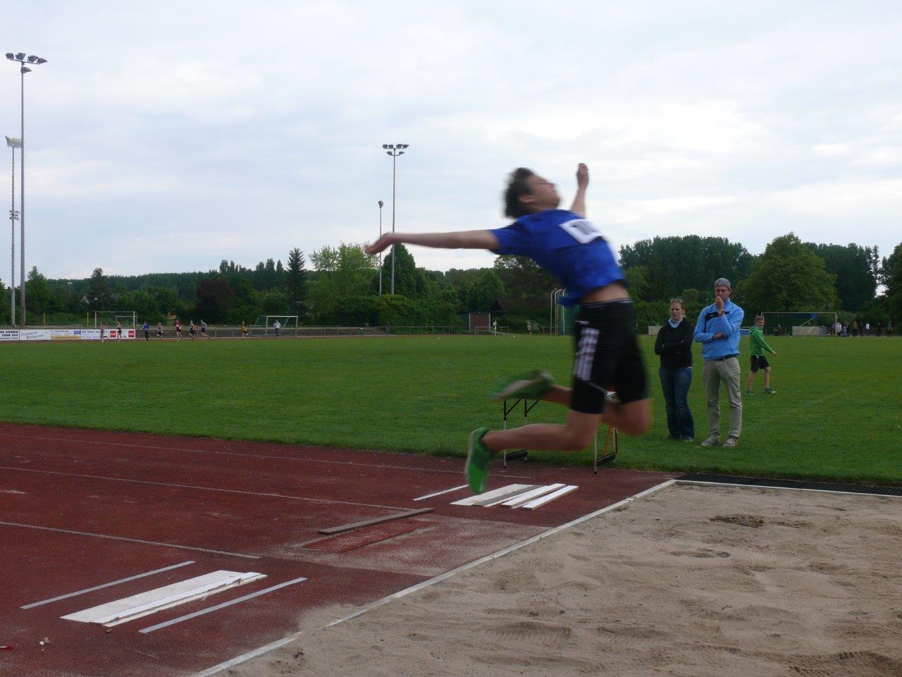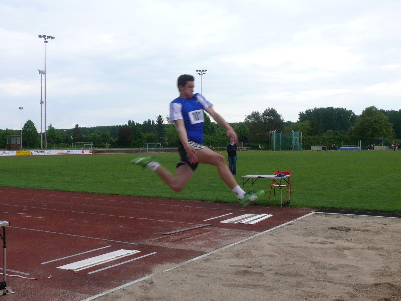 Paul Riedel überzeugte zum Saisonende nocheinmal mit Bestleistungen im Weitsprung (5,24m) und über die 80m Hürden (12,13s). Im Hürdenlauf war er der Zweitschnellste seiner Altersklasse. Im Kugelstoßen erreichte er mit 11,75m Platz 5 und trug so weitere Punkte zum Gesamtergebnis der männlichen U16 bei. In der abschließenden Staffel sicherte er sich gemeinsam mit Jan Bachmann, Marc Ludwig und Phillipe di Stefano die schnellste Zeit des Tages. Am Ende konnten die Jungs über den Sieg in ihrer Altersklasse jubeln.