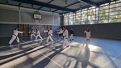 Anschließend wurde es spannend - auch für die anwesenden Eltern: Die einzelnen Schülerinnen und Schüler zeigten im Rahmen verschiedener Übungen und Aufgaben, was sie in den vergangenen Monaten von ihrem Trainer, Herrn Assad Mohebbi (2. Dan Taekwondo), gelernt haben.